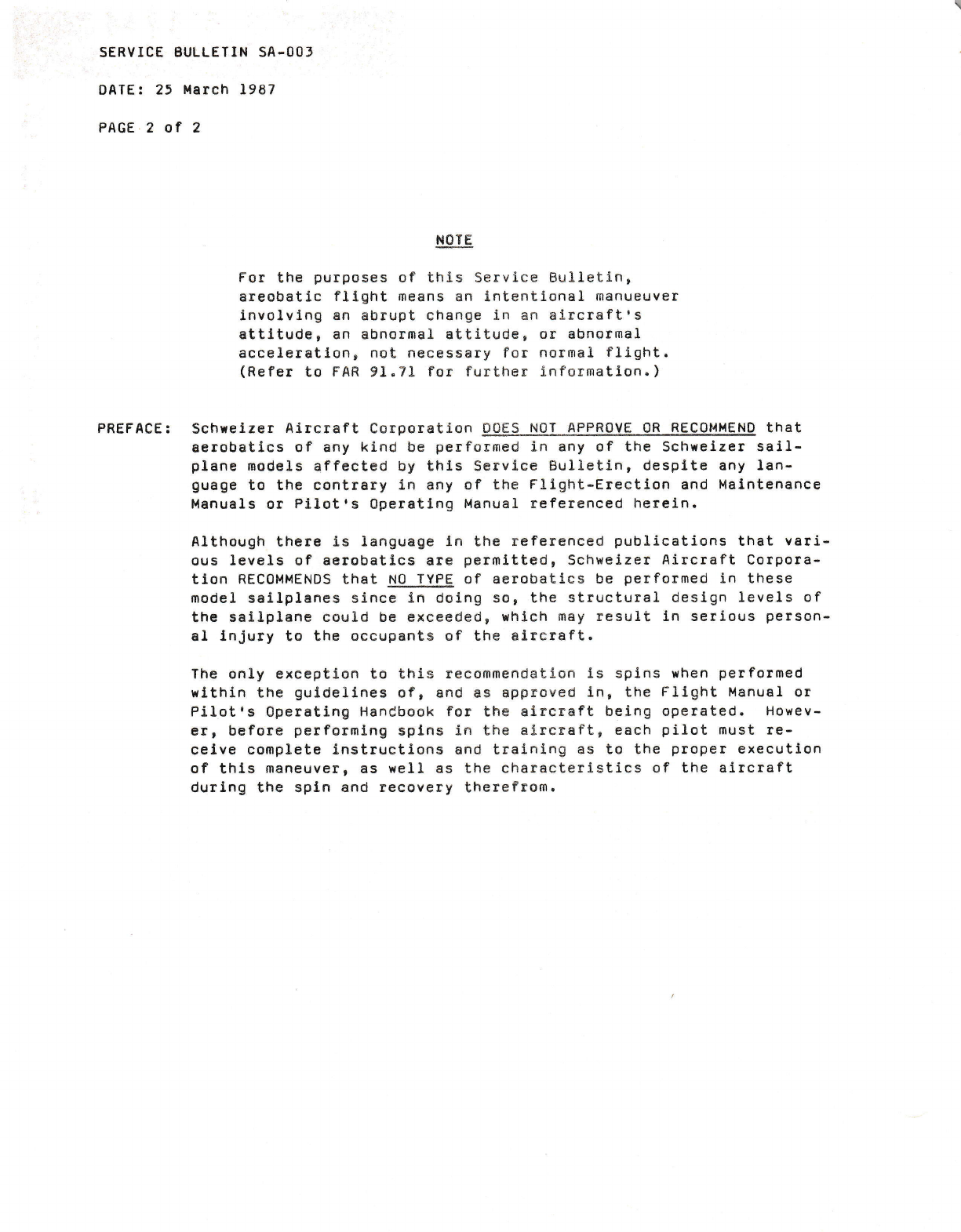 87-02-01 To prevent the possibilitY of