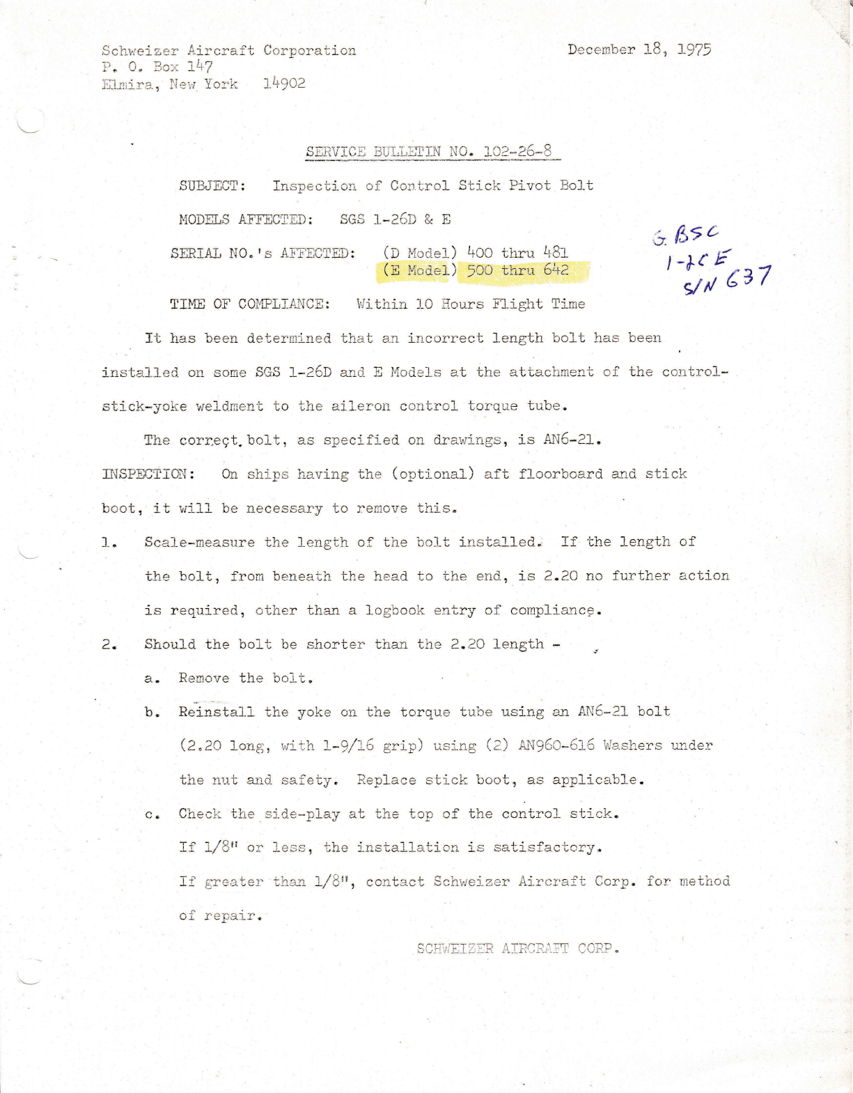 SCHWEIZER AIRCRAFl CORP.. ELMTRA. N. Y.