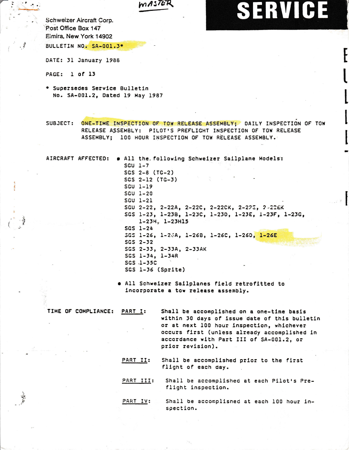 FAA AD NOIES: MFTIR'S SERVICE BULIETTI{S-E/IJIrru I\uIriD: IvLuUtt'U D-HI(vlUl5 IJULL!;'1II'IU I{ev. 121-tA n^a, /, l-la