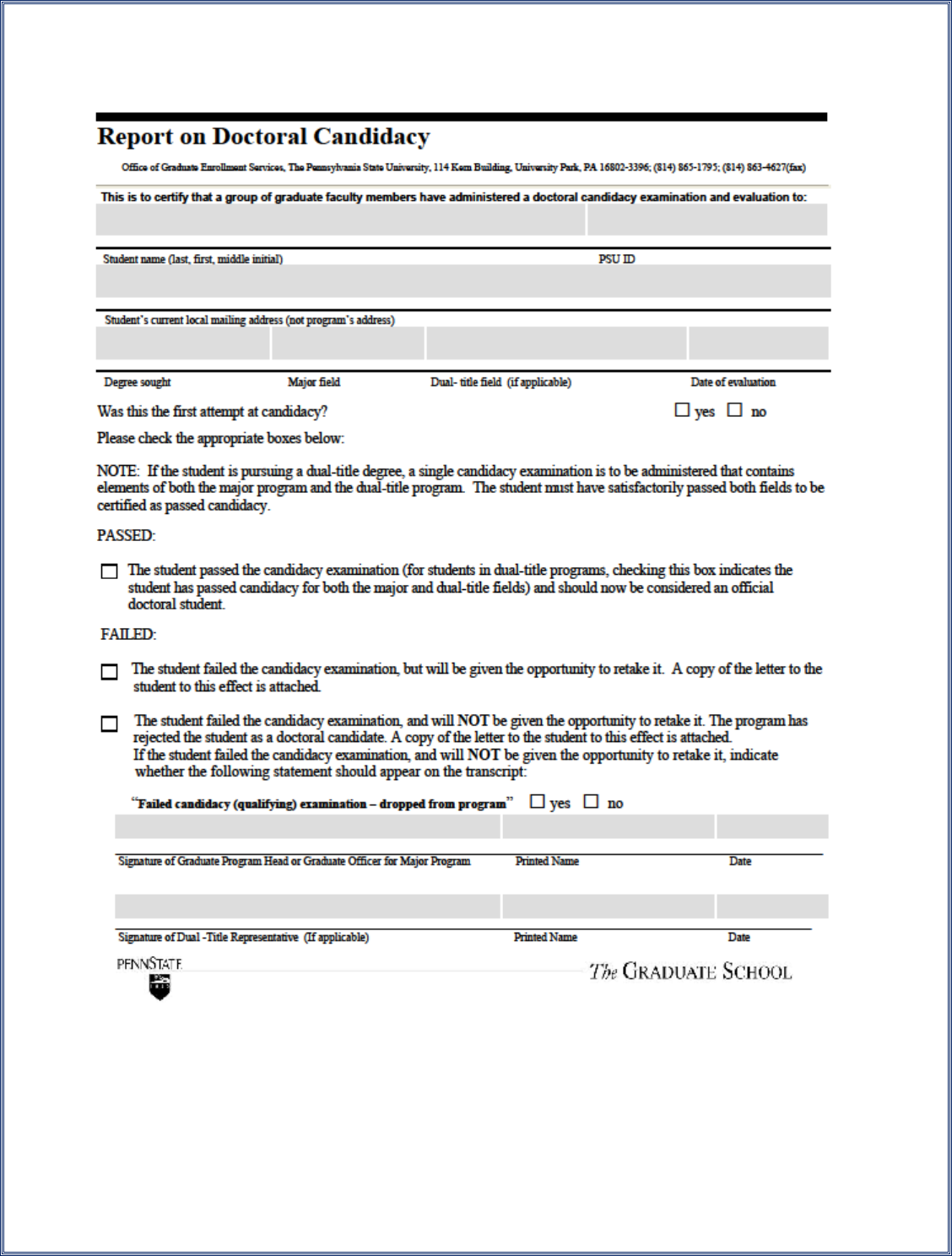 final oral examination for doctoral students. Upon receipt of this notice, the student has the