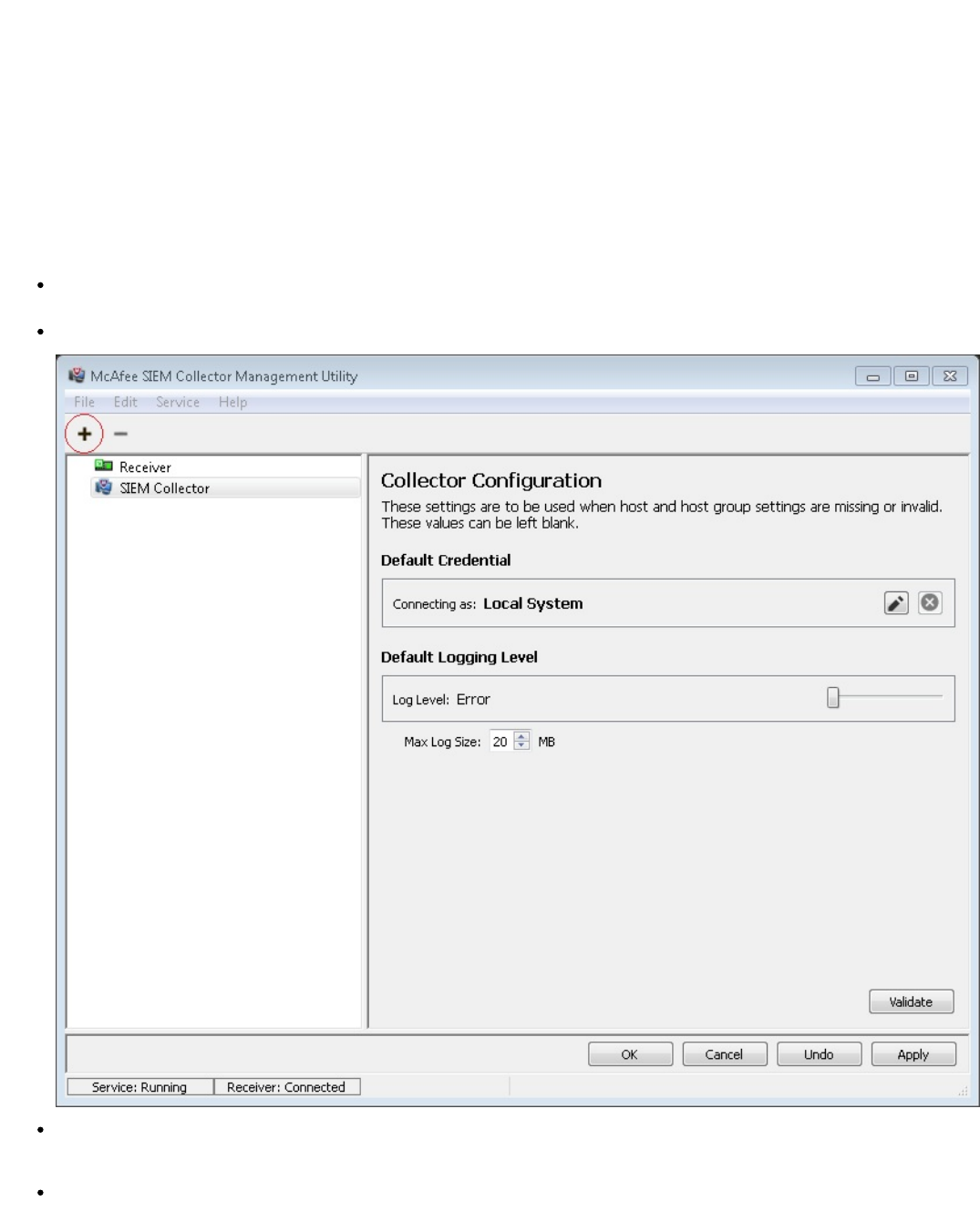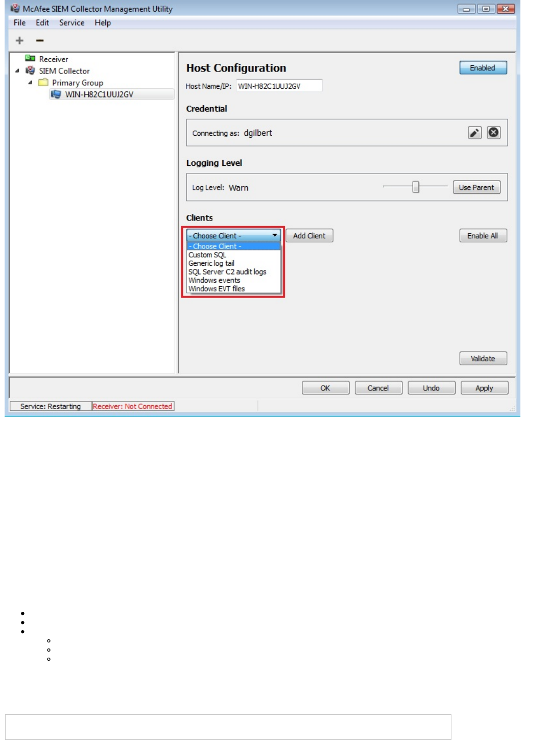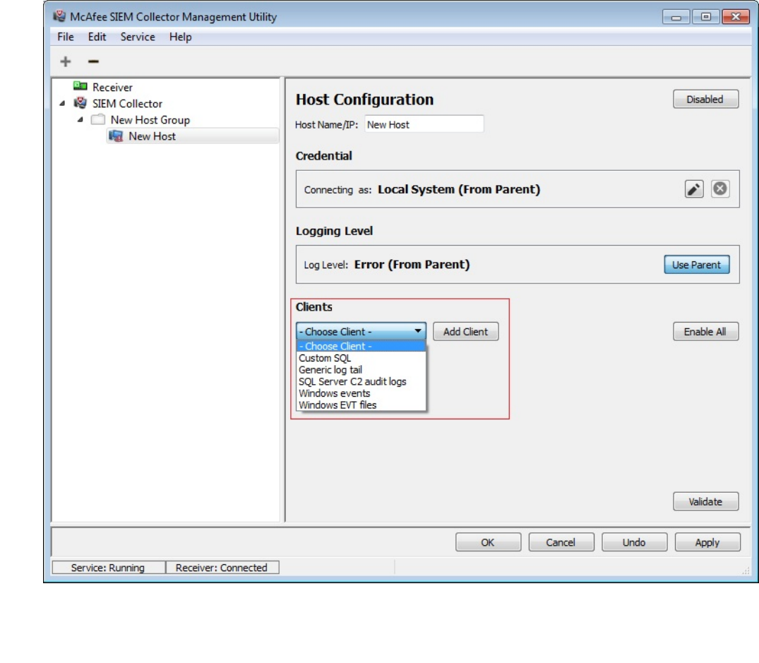 with a Receiver. The SIEM Collector can be configured to send events from the local Windows machine or
