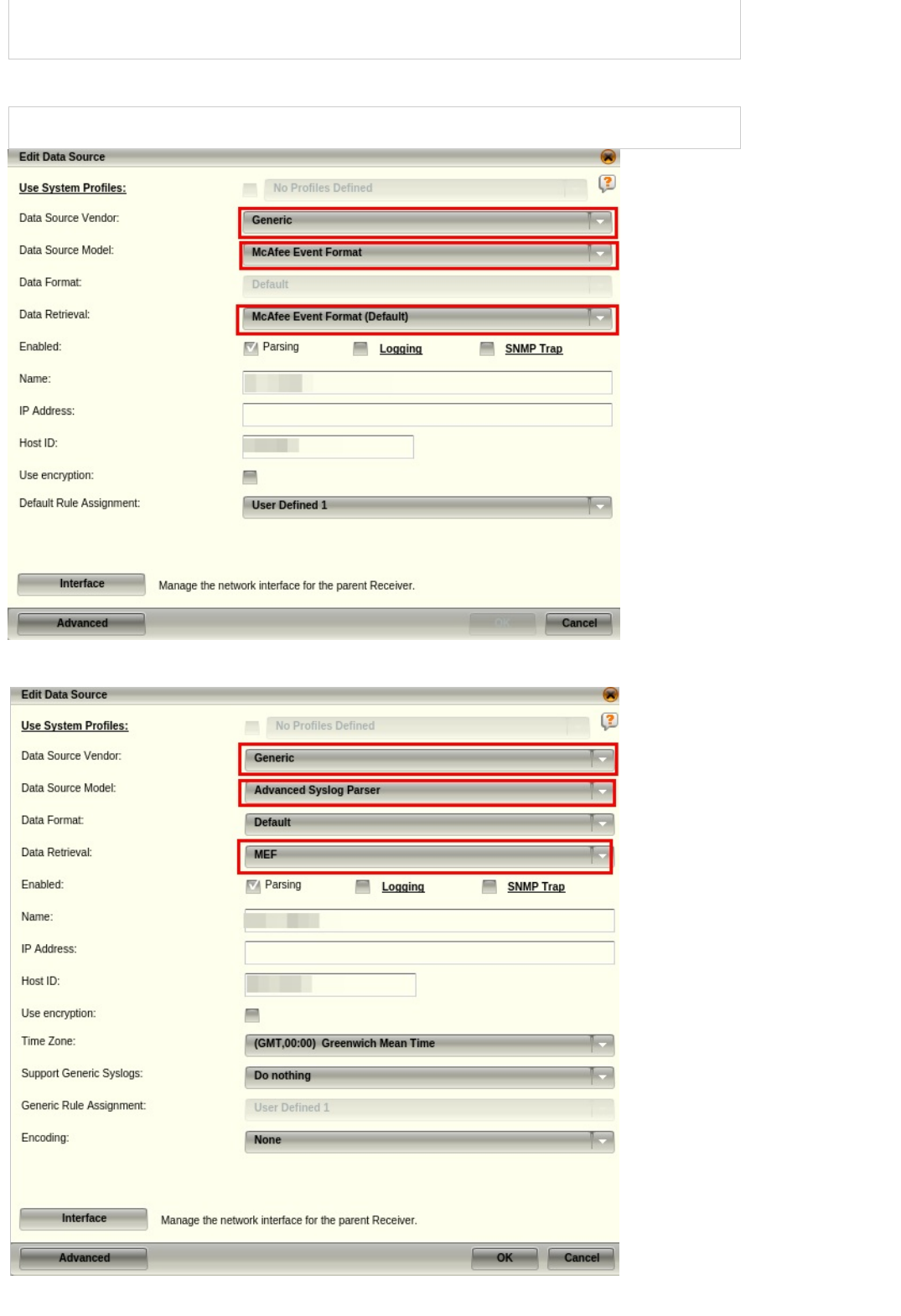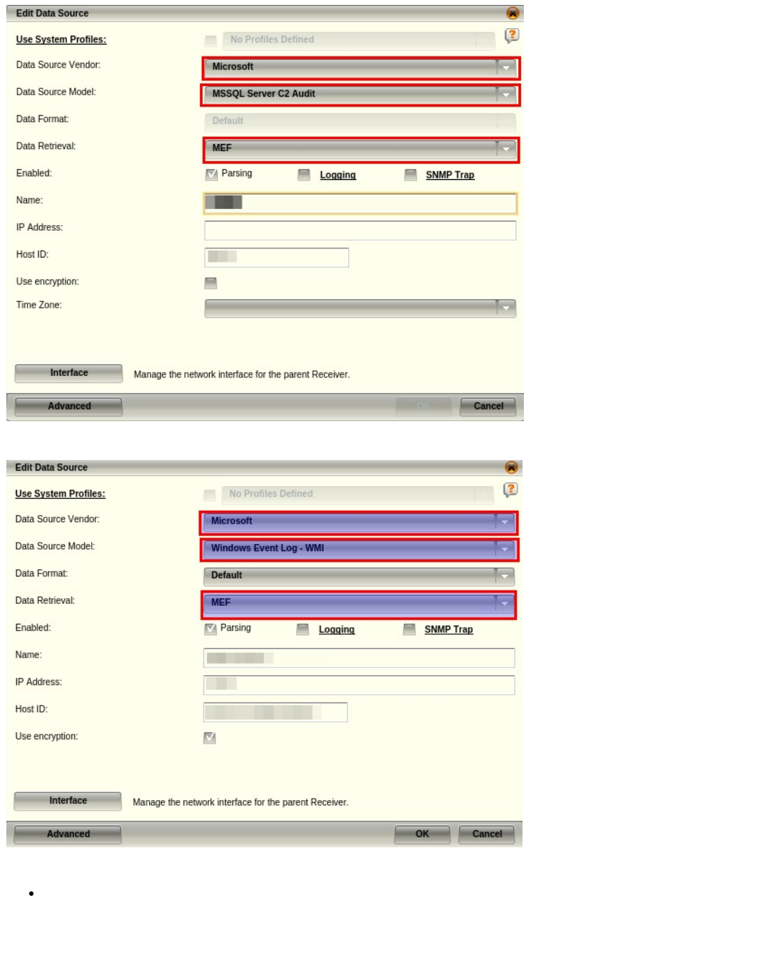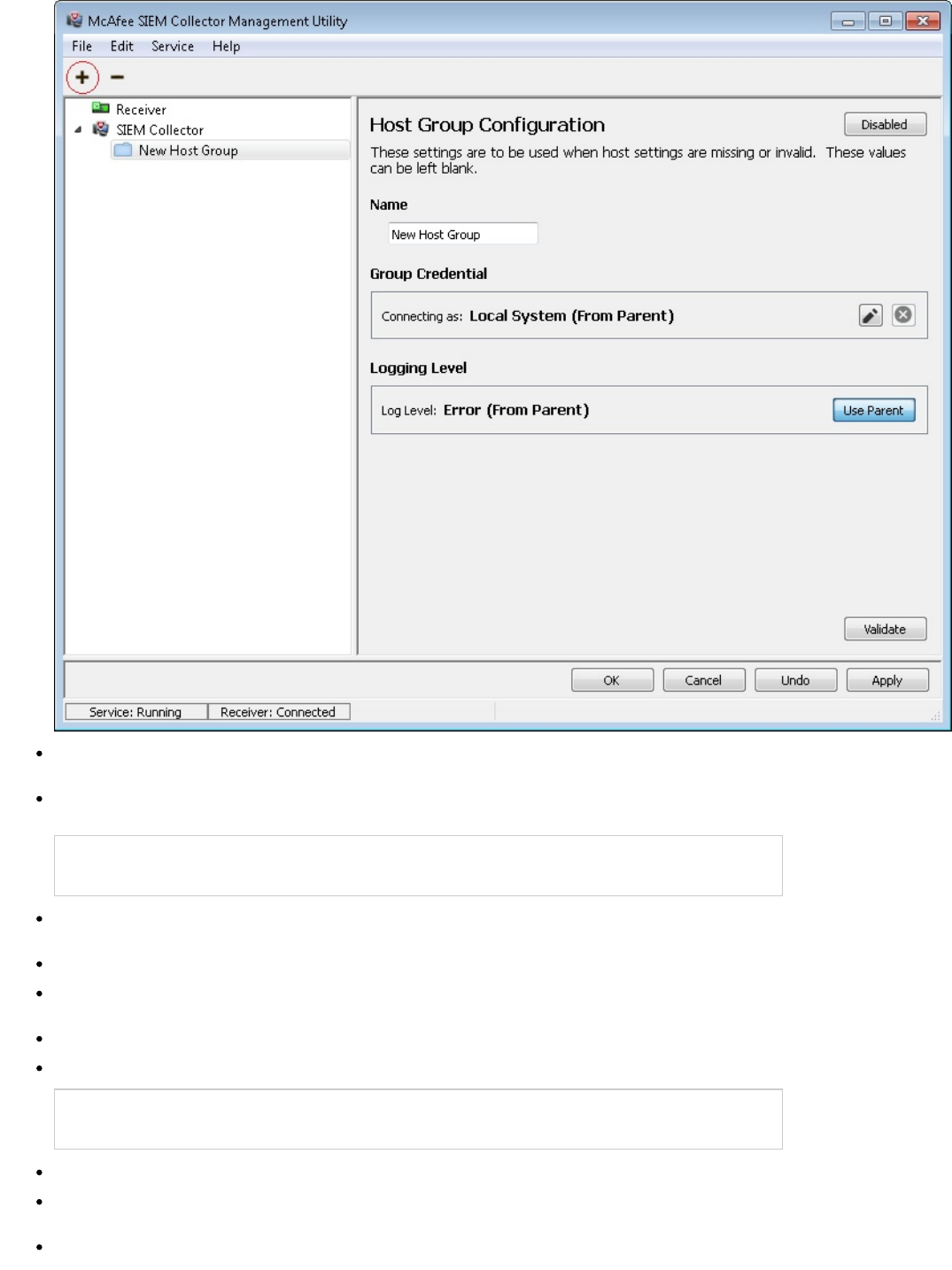 UseParentLogging - Use credentials of the SIEM Collector node. Possible values: true, false