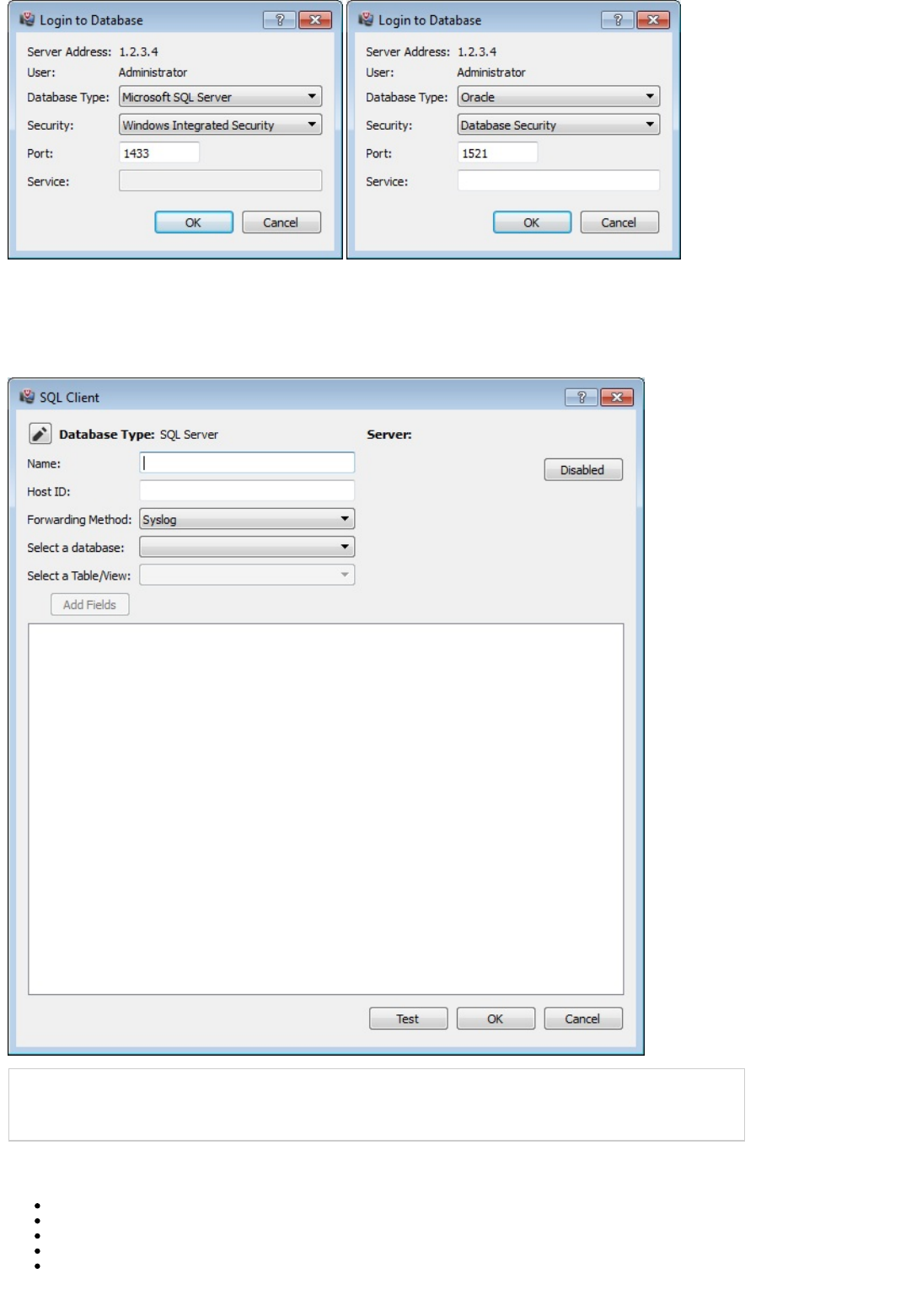 credentials of the machine on which the database resides, the database credentials will need to be entered