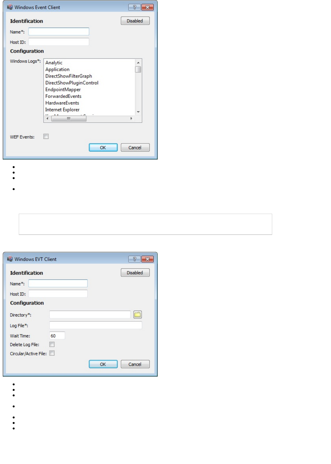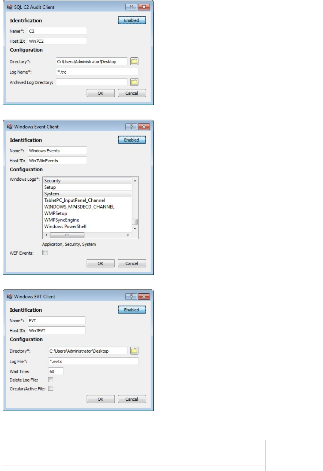 The Windows EVT Files client is setup the same as the Windows Events.