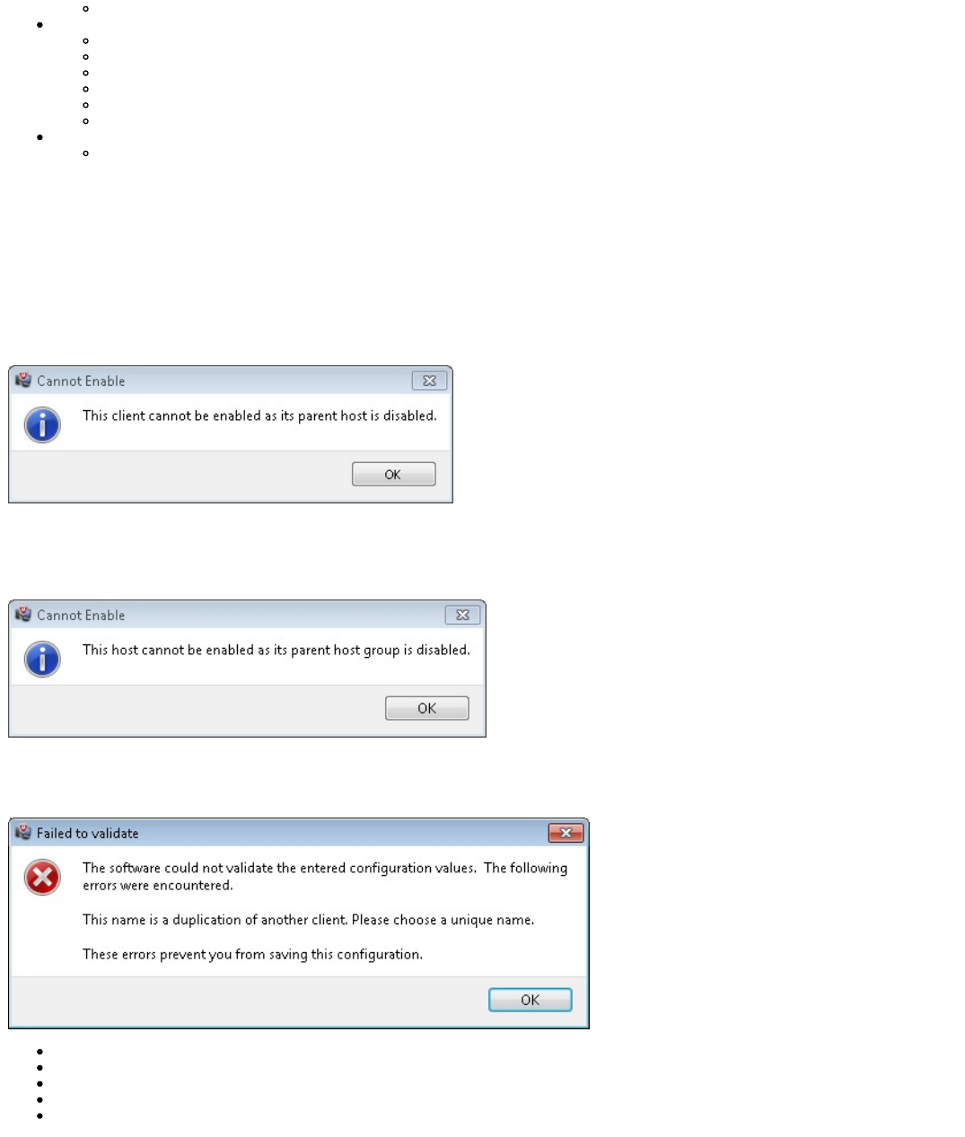 Note : Credentials are only validated when the host has enabled clients. Failed validation