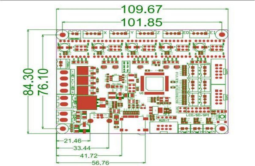 6) Acceptable 24V input, the hot bed current can be reduced to 1/4 under