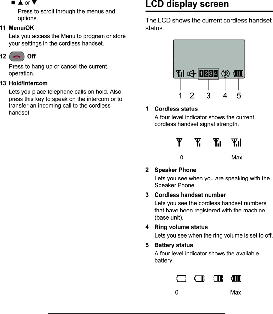 (1) On the cordless handset, press the Menu/OK, *, Menu/OK, and * keys in this order. The
