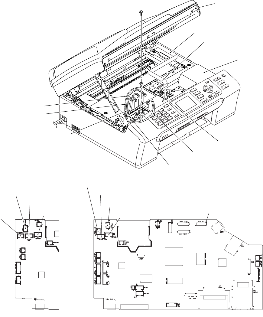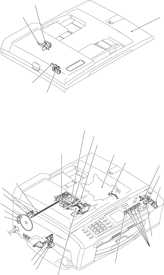 - 6.1.5 Control Panel ASSY, Scanner Cover Sensor Actuator, Ink Cartridge Cover Sensor Actuator, and Cover Sensor PCB