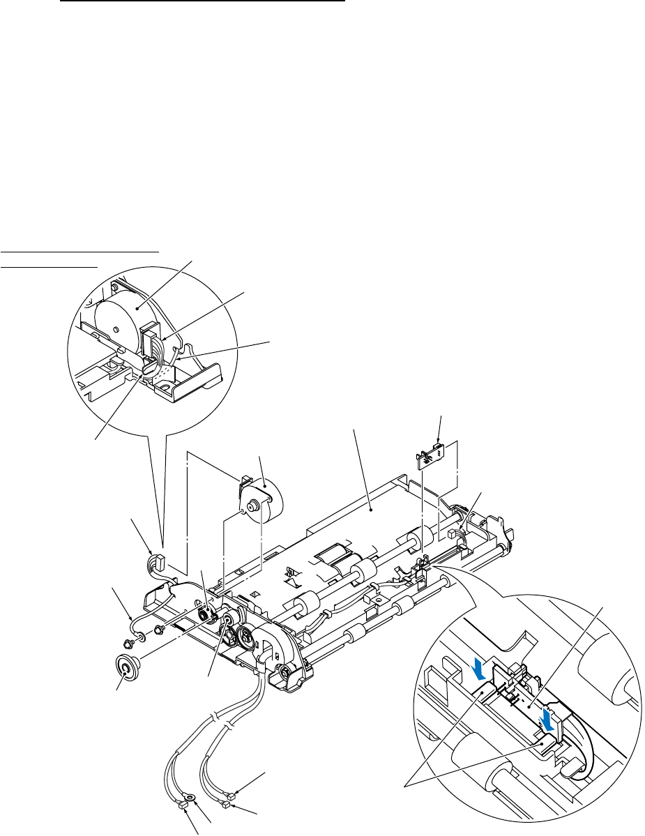 - 6.1.18 Components on the Engine Unit (Maintenance unit, Mode switching lever & clutch gear ASSY, Carriage motor, Inner chute ASSY, Registration sensor PCB, PF encoder PCB, Paper feed motor, Paper pull-in gear shaft, and Paper pull-in roller holder)