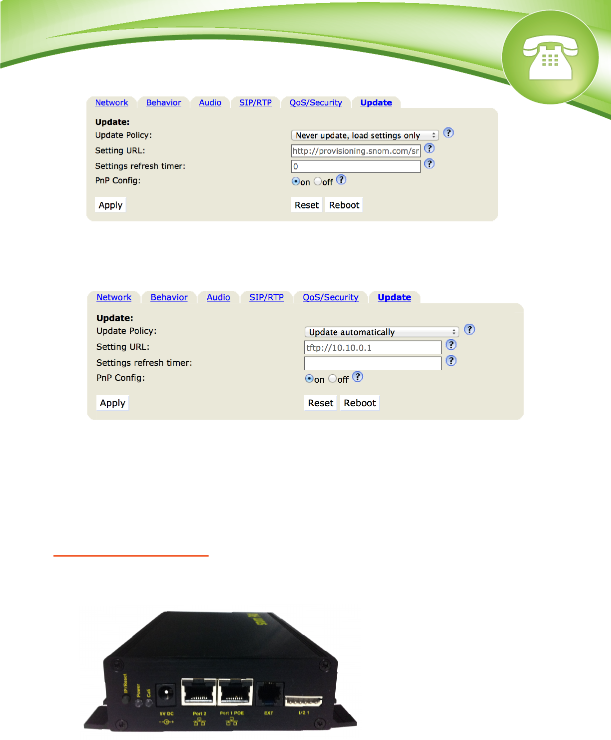 5. Define the Setting URL to your PBX. Generally this would be tftp://IPADDRESS,