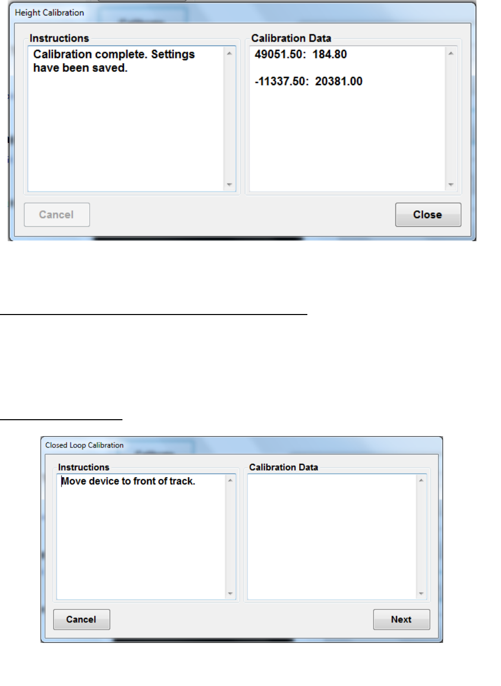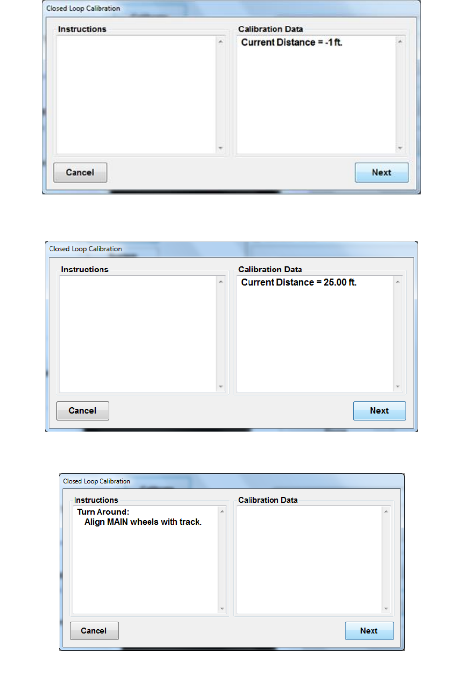 calibration information. As needed, recalibrate the absolute encoder, distance, and height sensor.