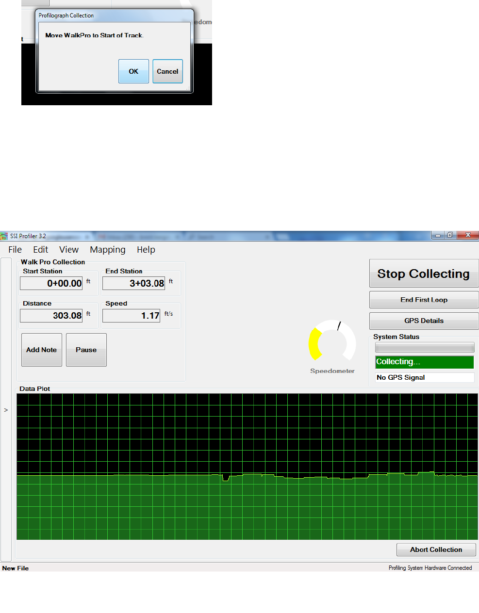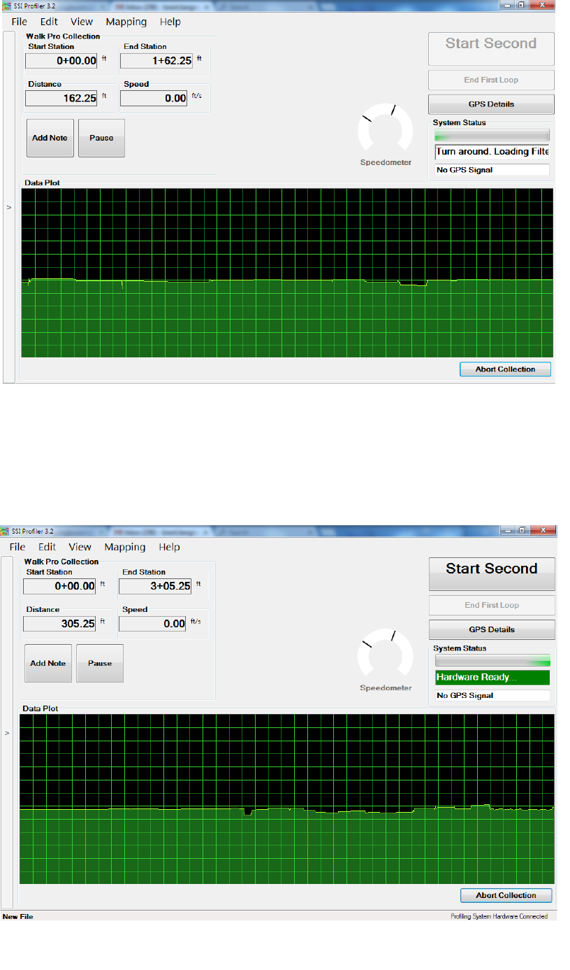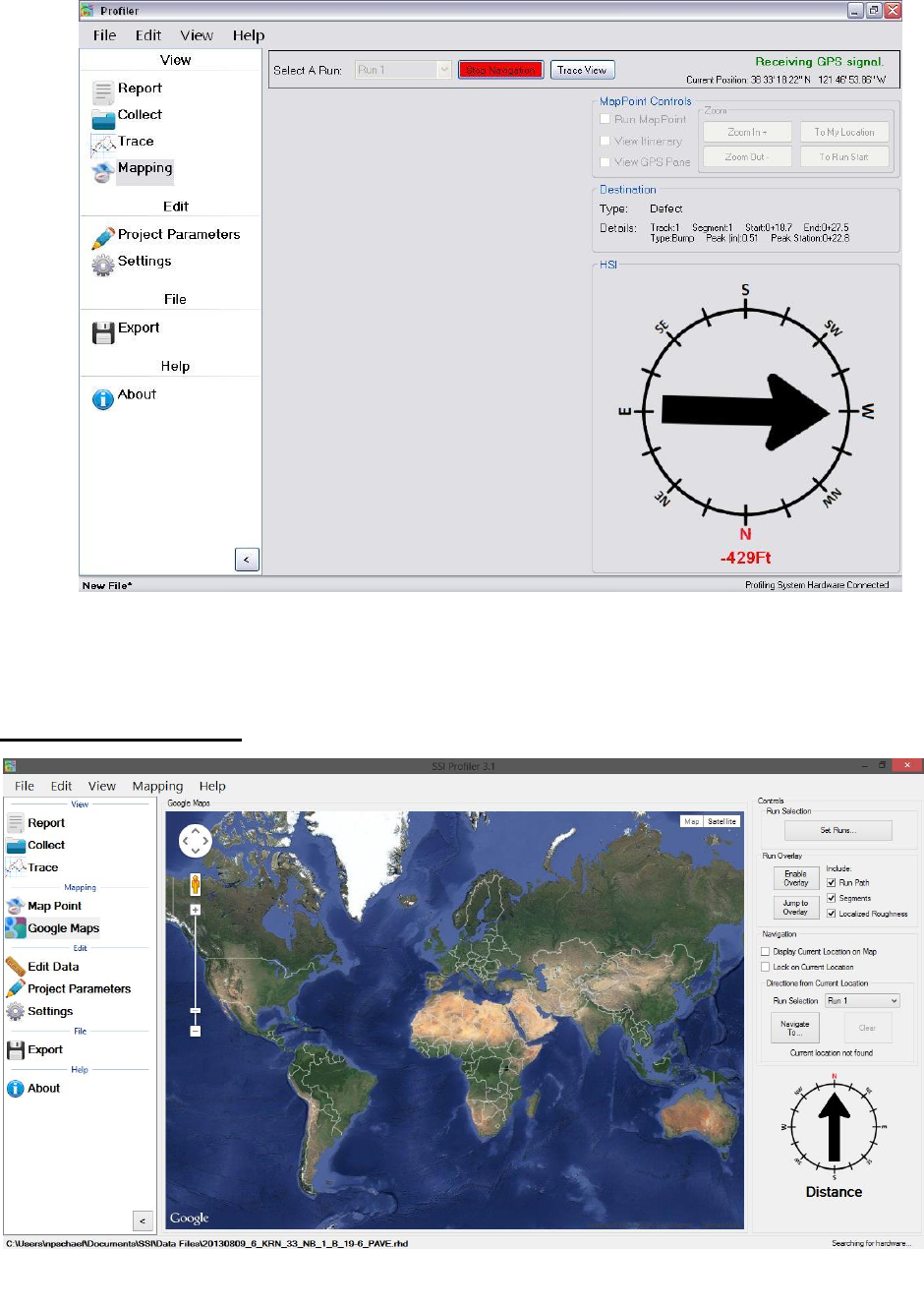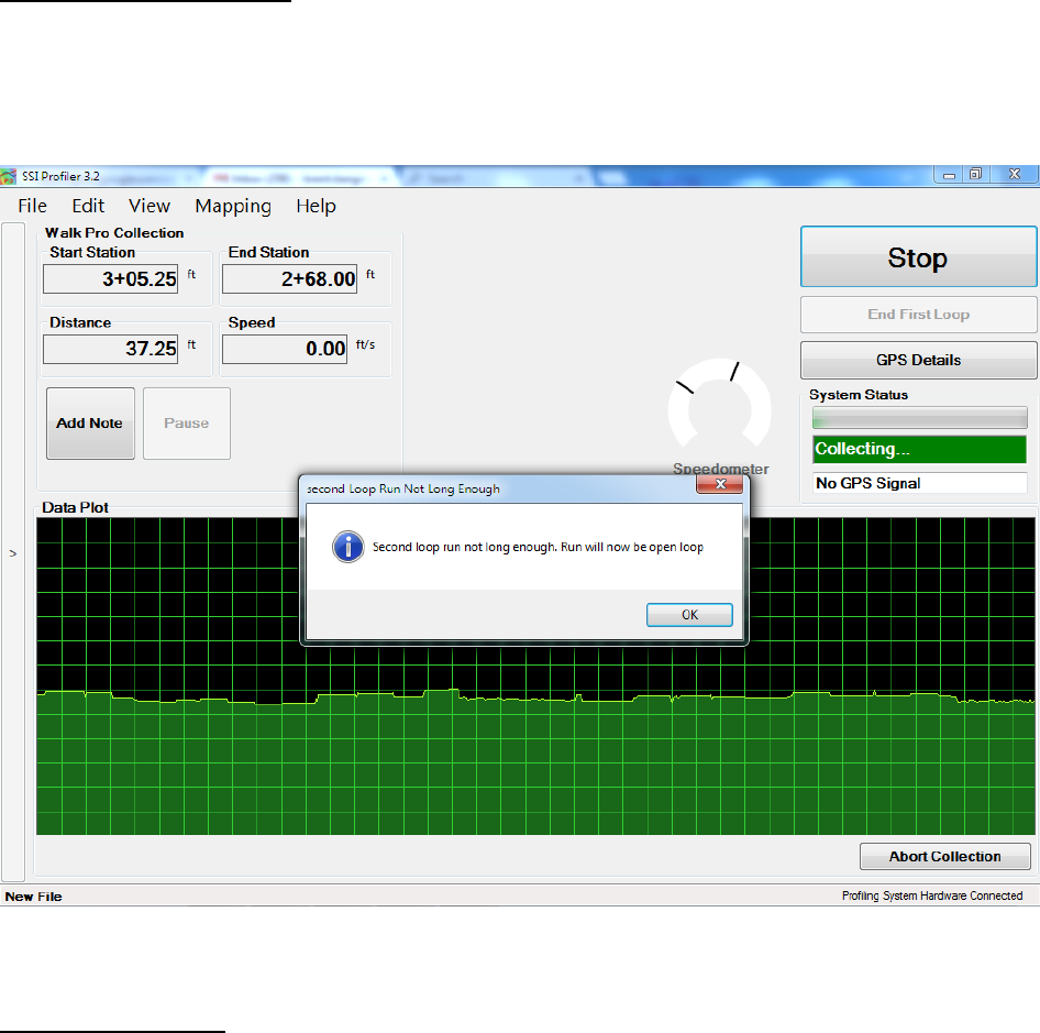 stand or if the profiler is in an area of low reception, the GPS position may not be found. Review