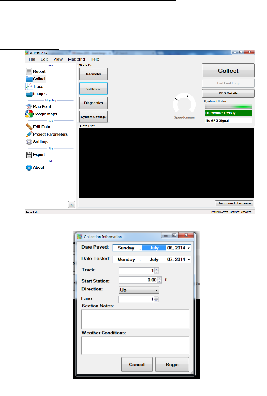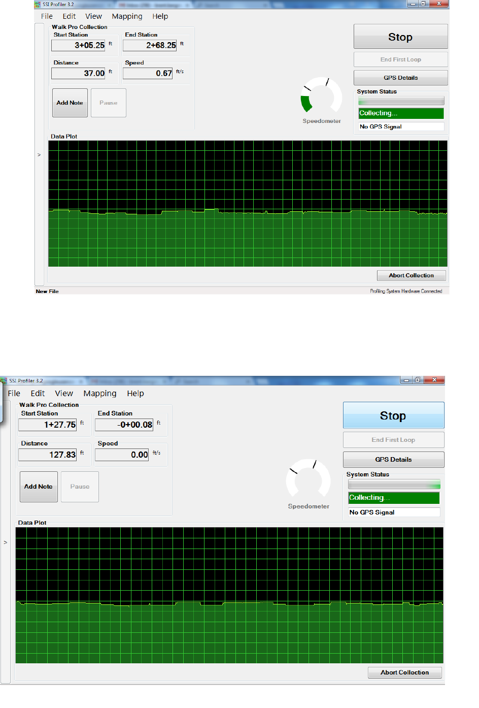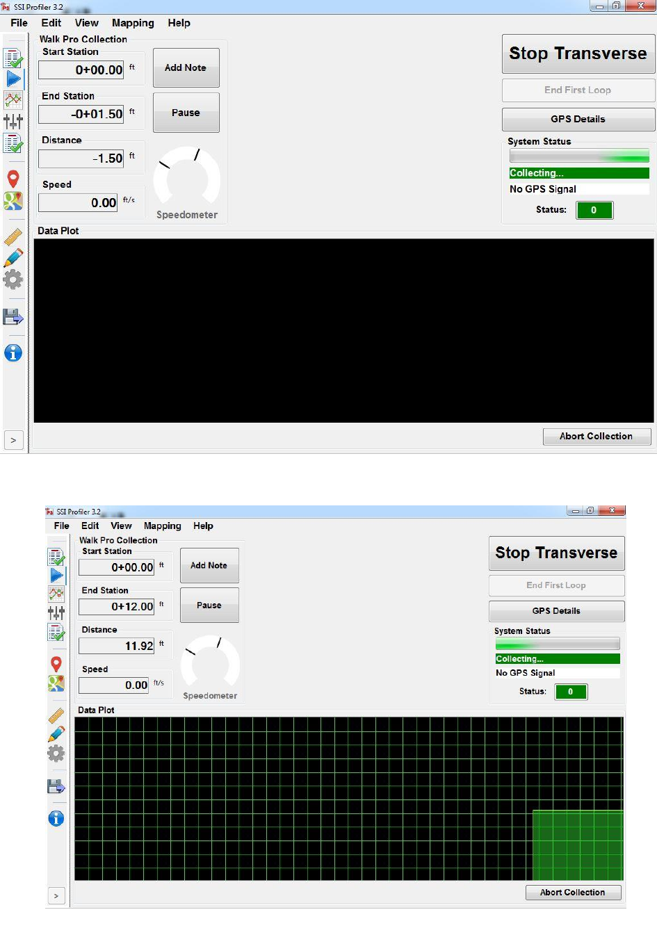 stand or if the profiler is in an area of low reception, the GPS position may not be found. Review