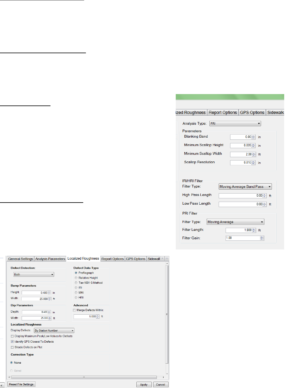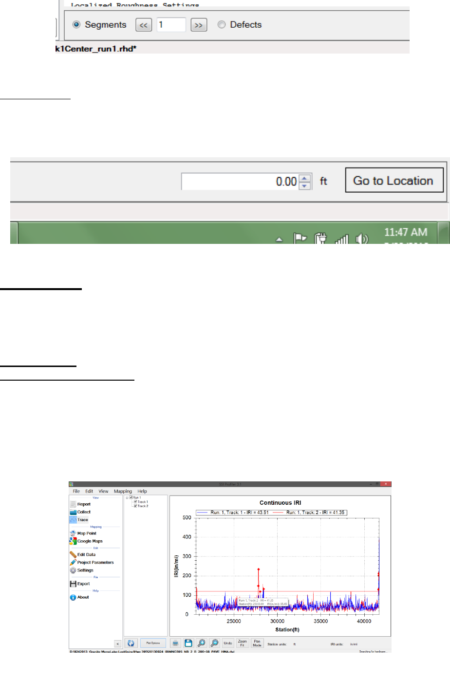 For Localized Roughness: Red Pin is Track 1, Blue Pin is Track 2, Green Pin is Track 3.