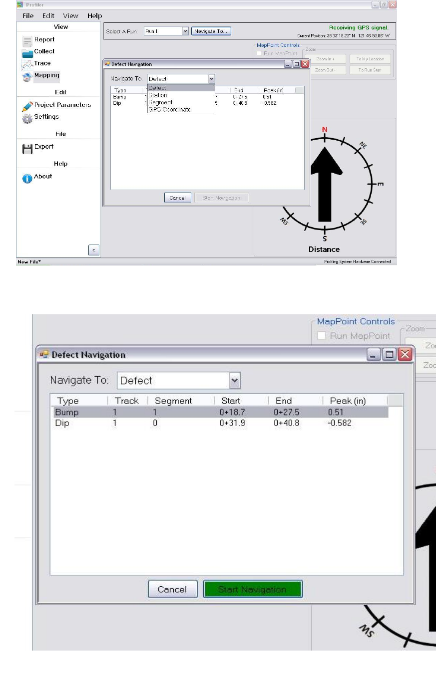 “Navigate To” icon. If GPS is connected the program will ask the user where to be navigated to.