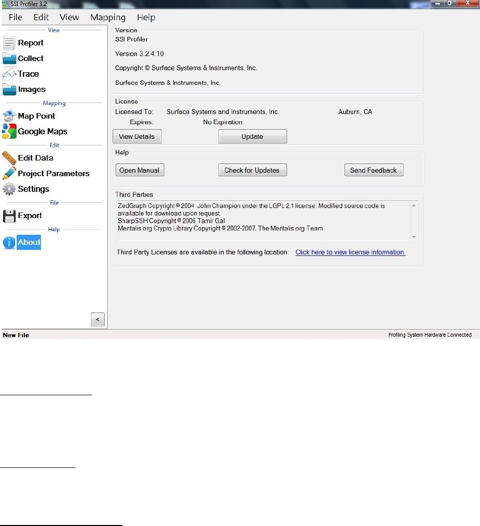 The computer’s Profiler V3 license information can be viewed in the About window. The details