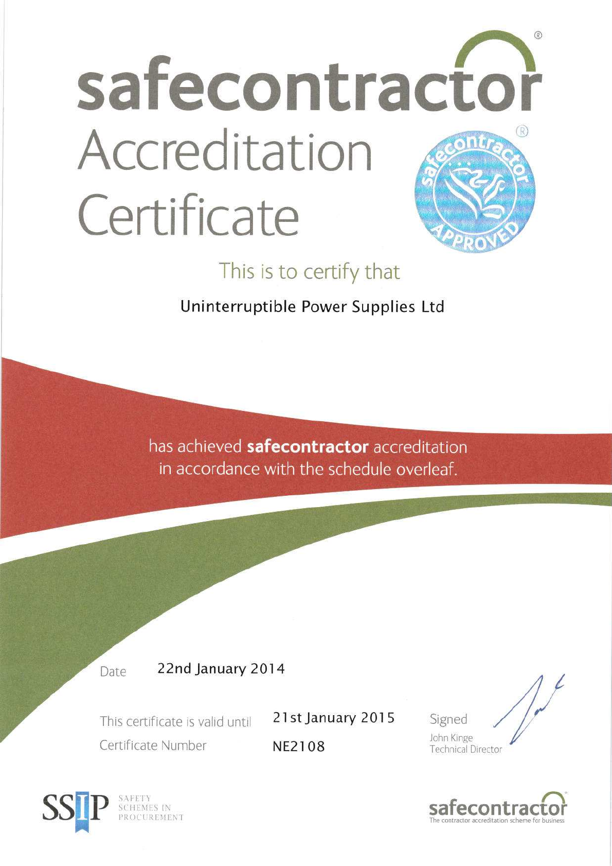 Safe Contractor Certificate 2014