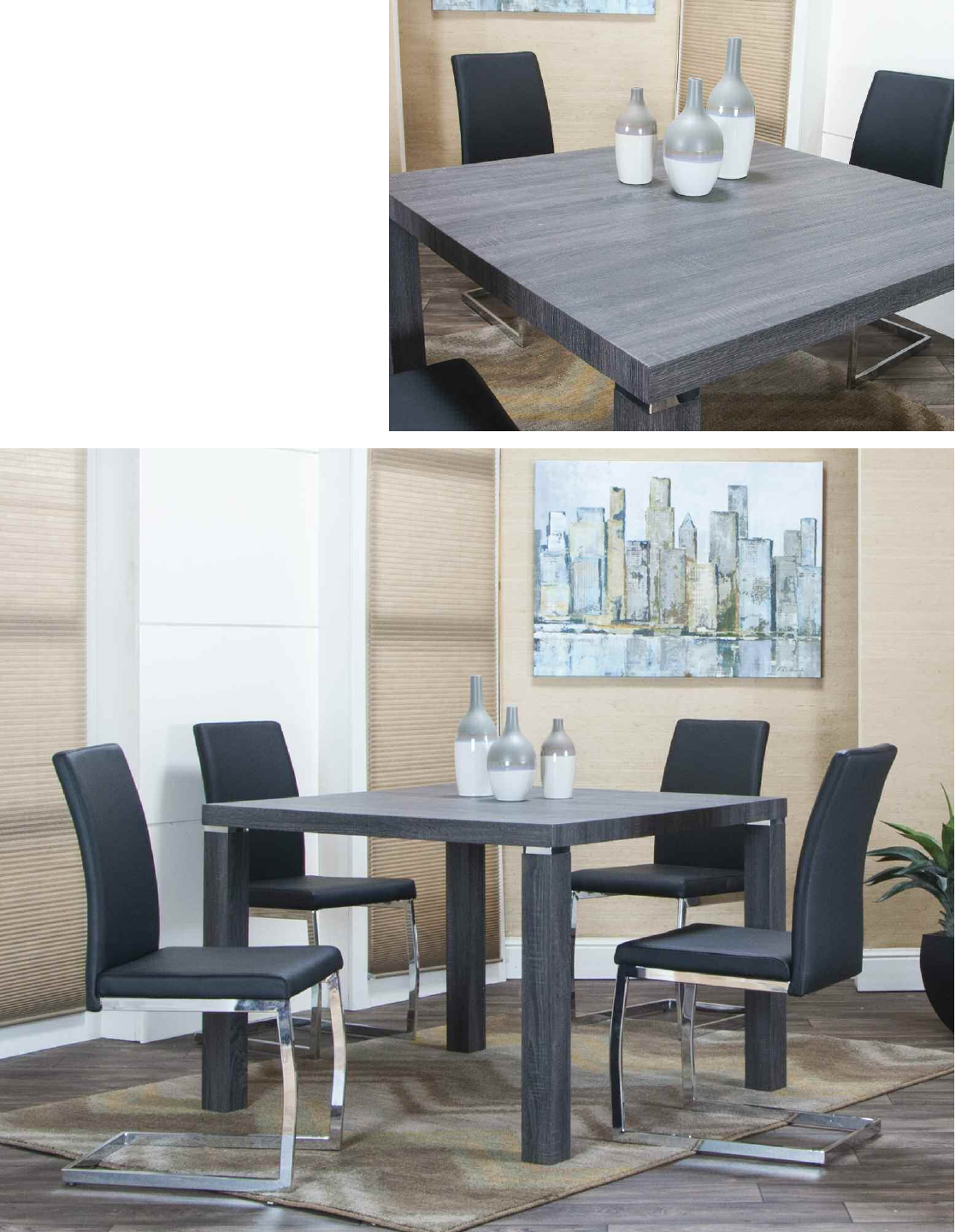 Charcoal Woodgrain/Chrome Table Legs