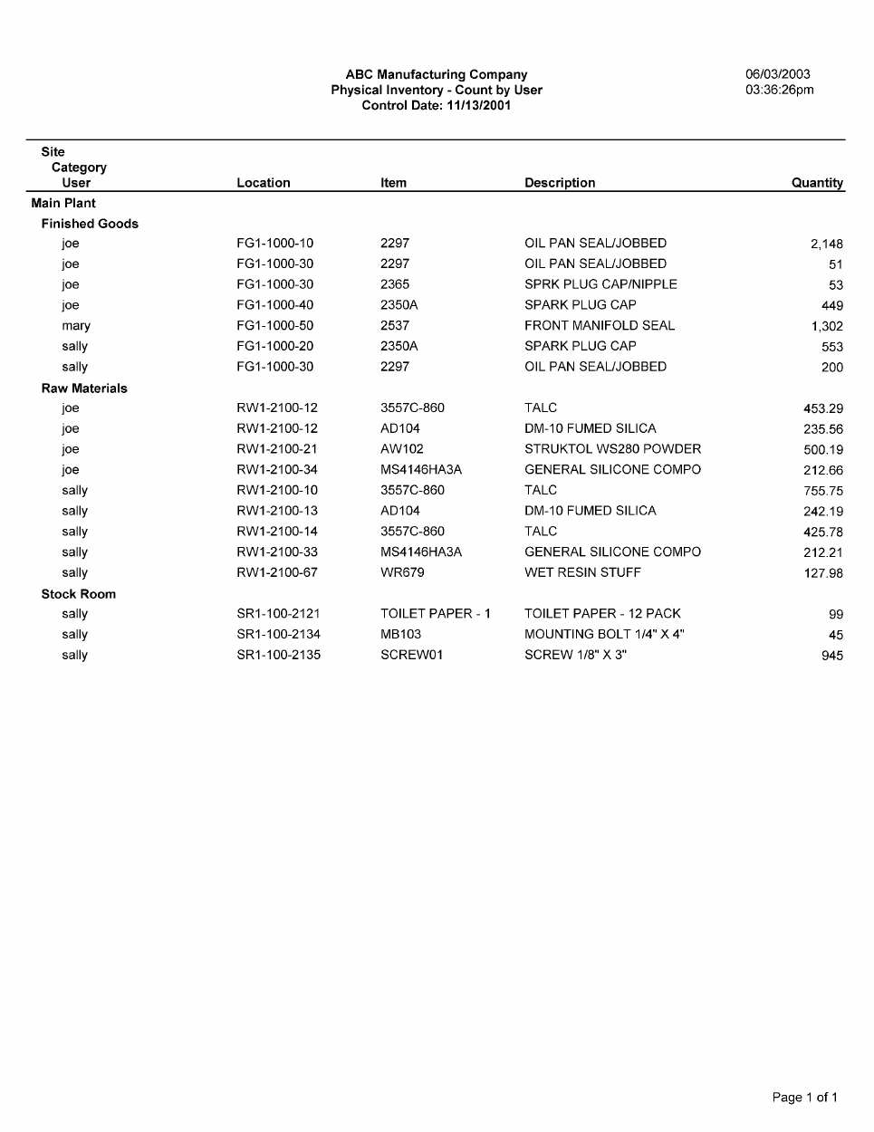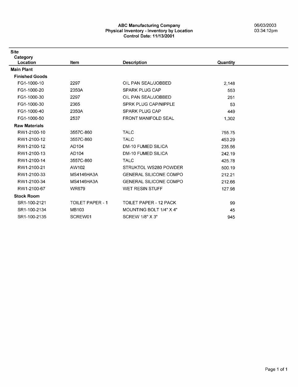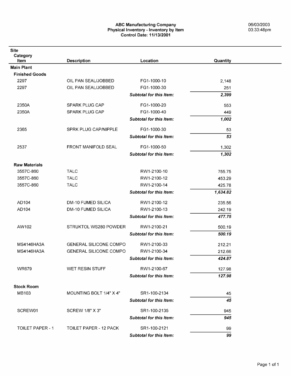 Physical Inventory - Inventory by Item....................................................................................... 12