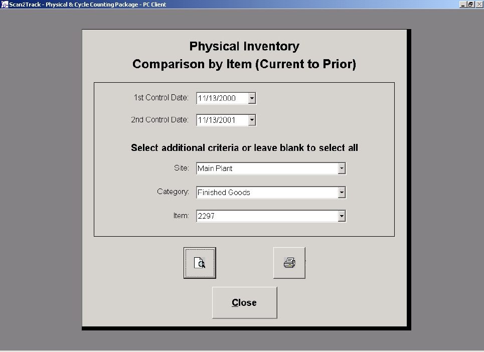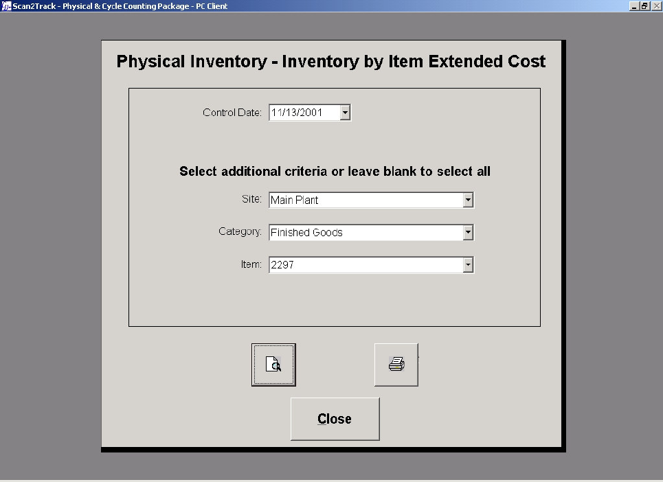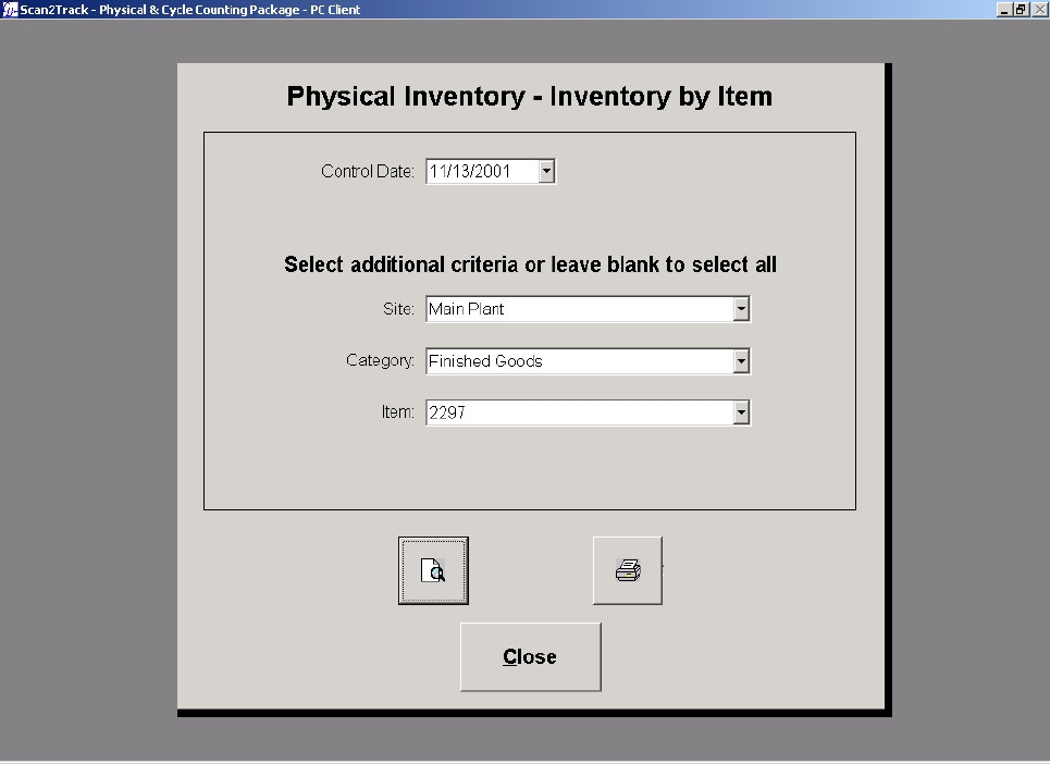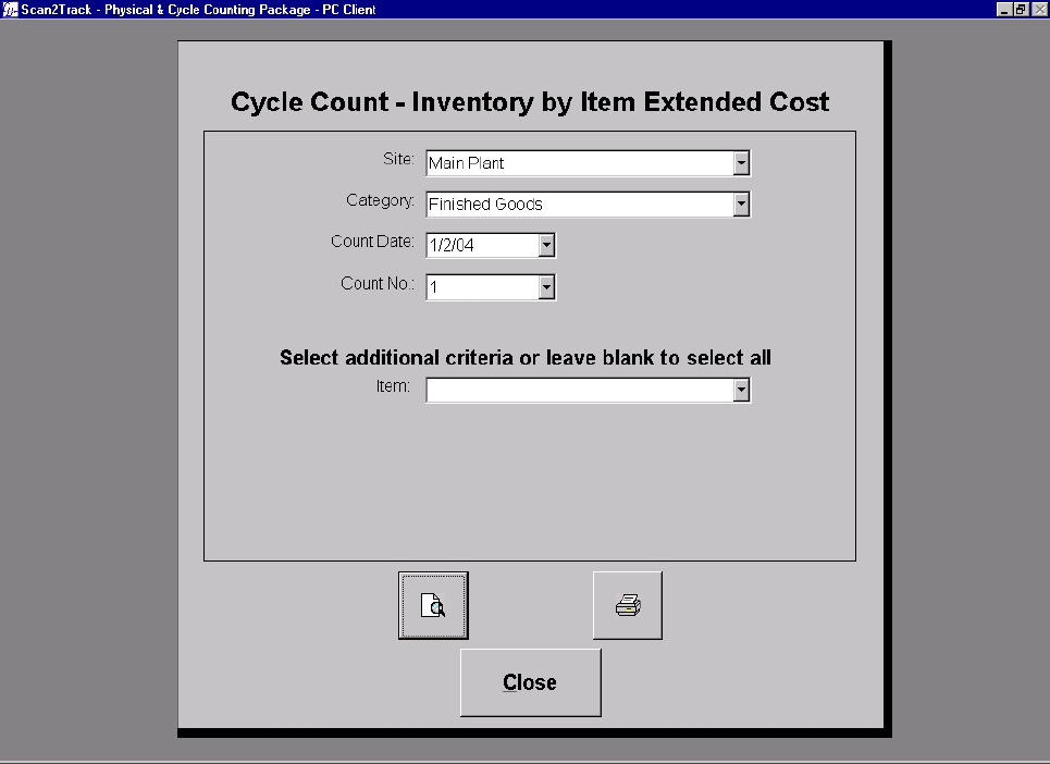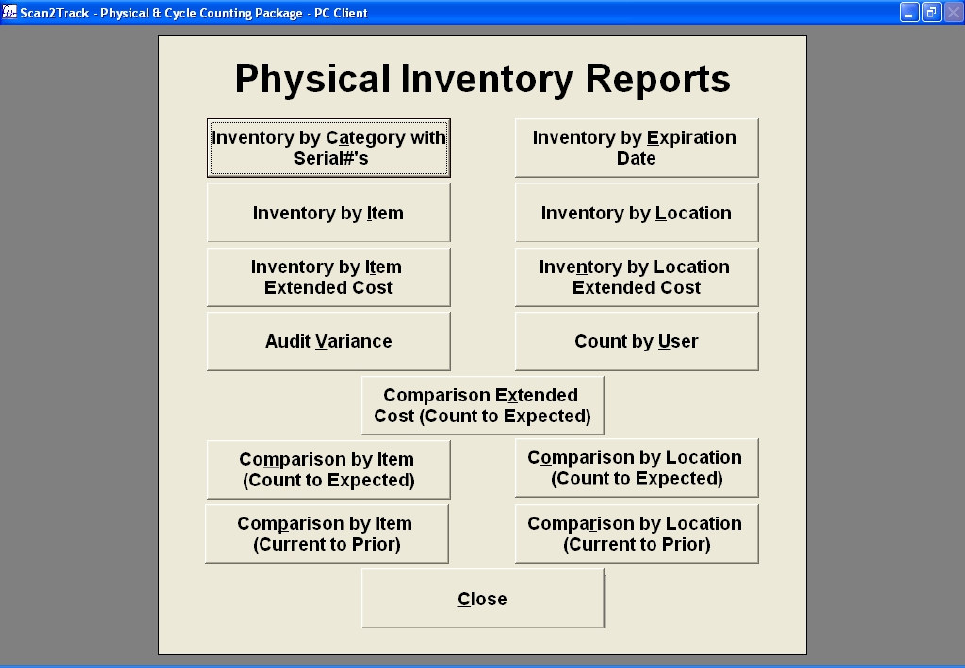 Click the Close button to close this screen and return to the Physical Inventory Reports Menu.