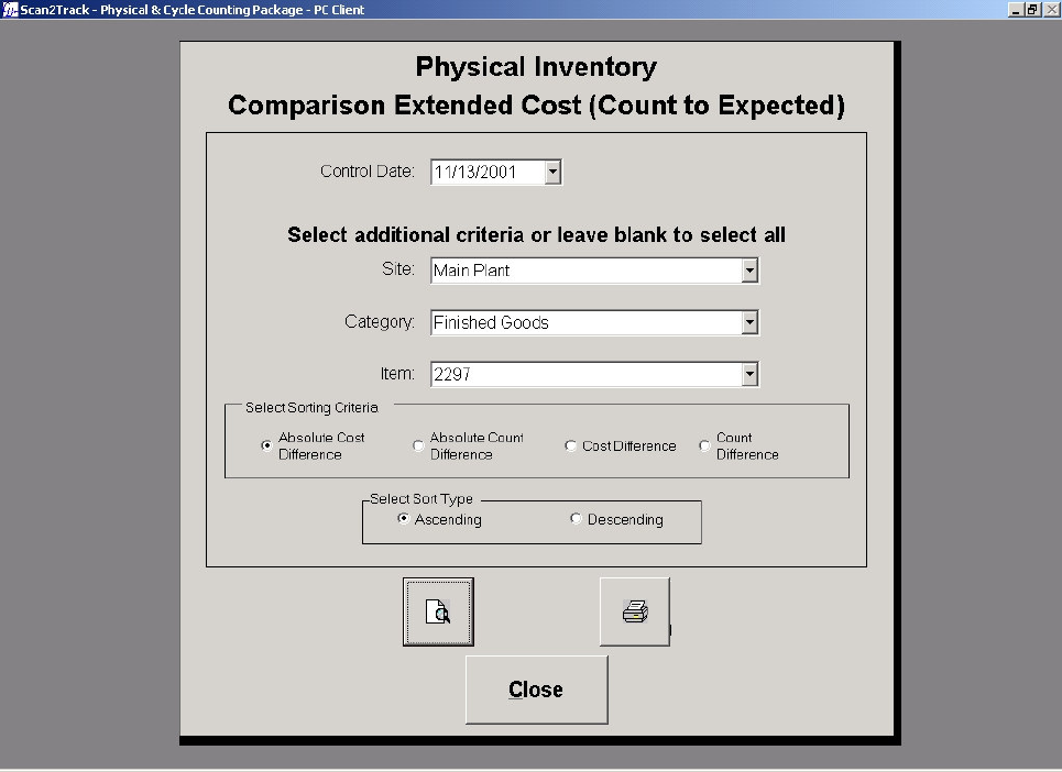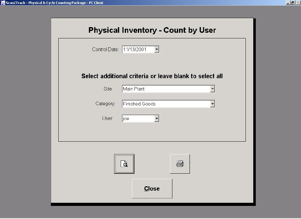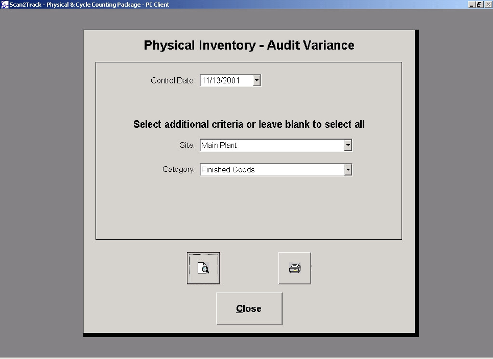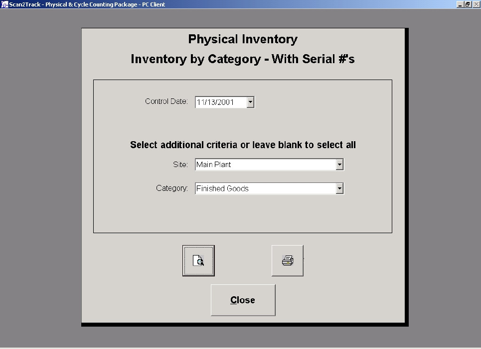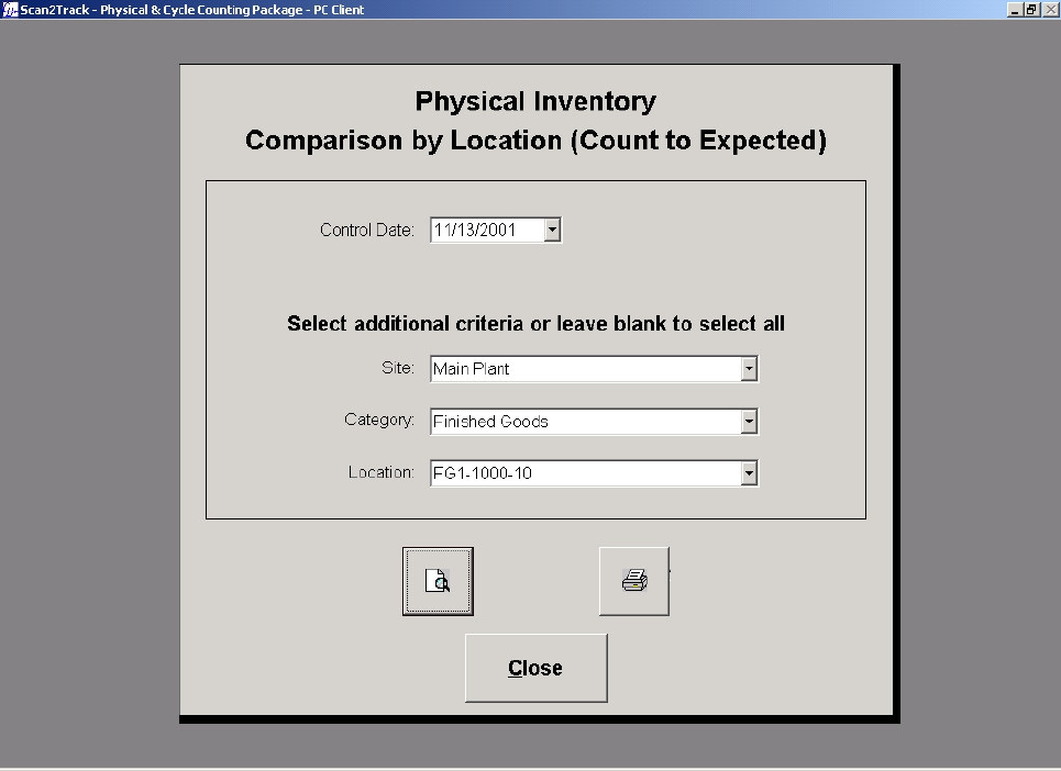 Click the Close button to close this screen and return to the Physical Inventory Reports Menu.