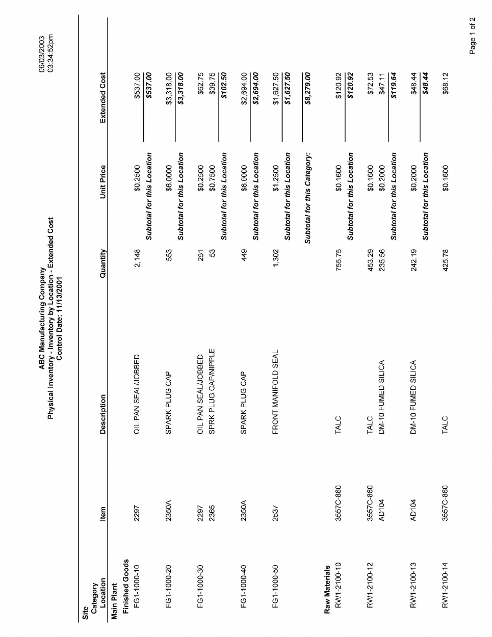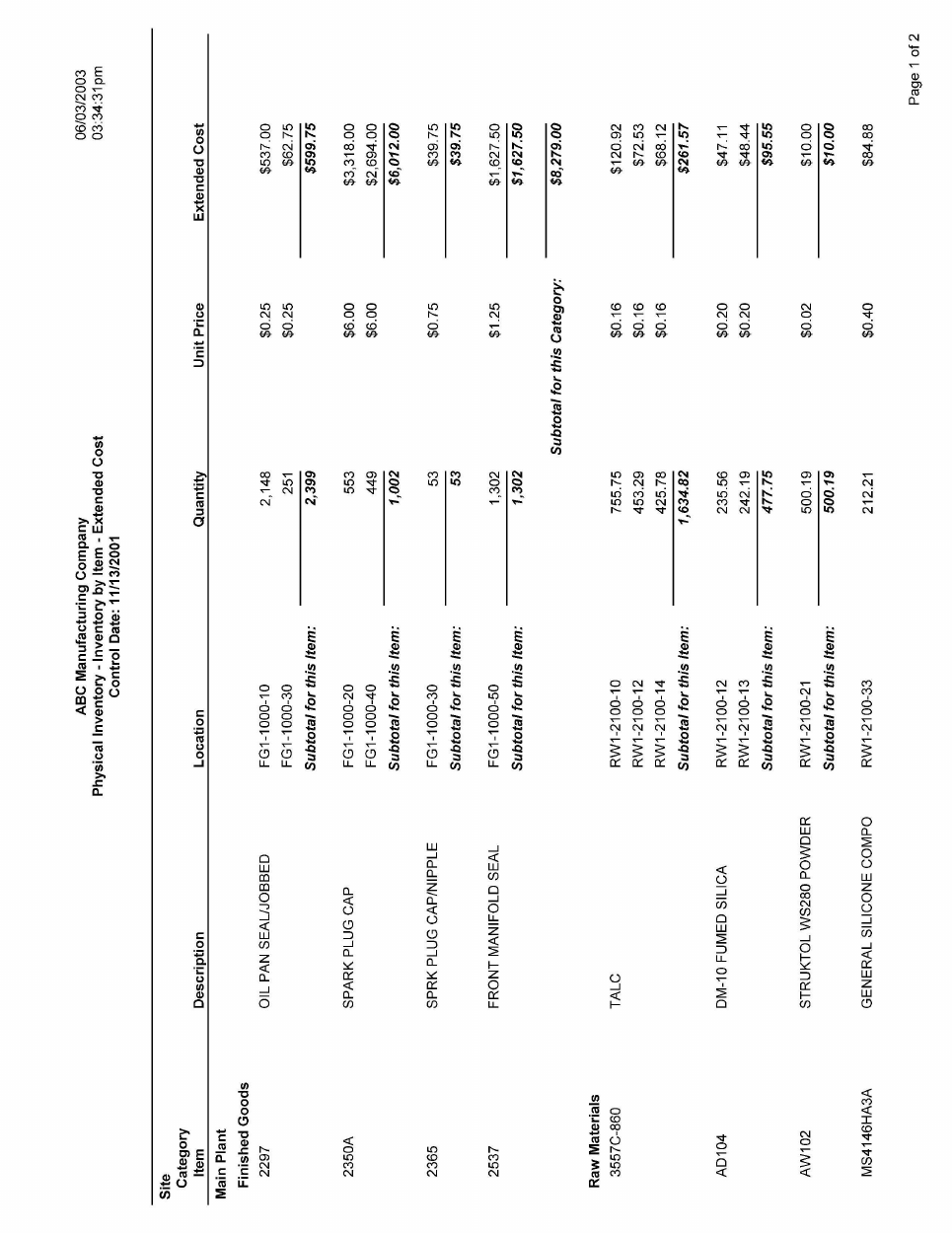Physical Inventory - Inventory by Item Extended Cost .............................................................. 18