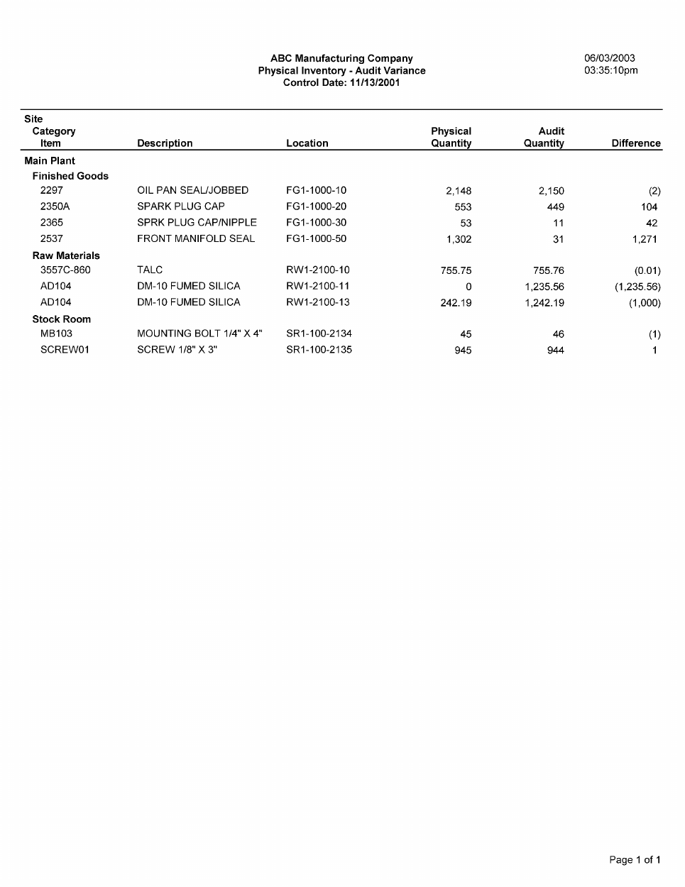 Physical Inventory - Audit Variance ........................................................................................... 26