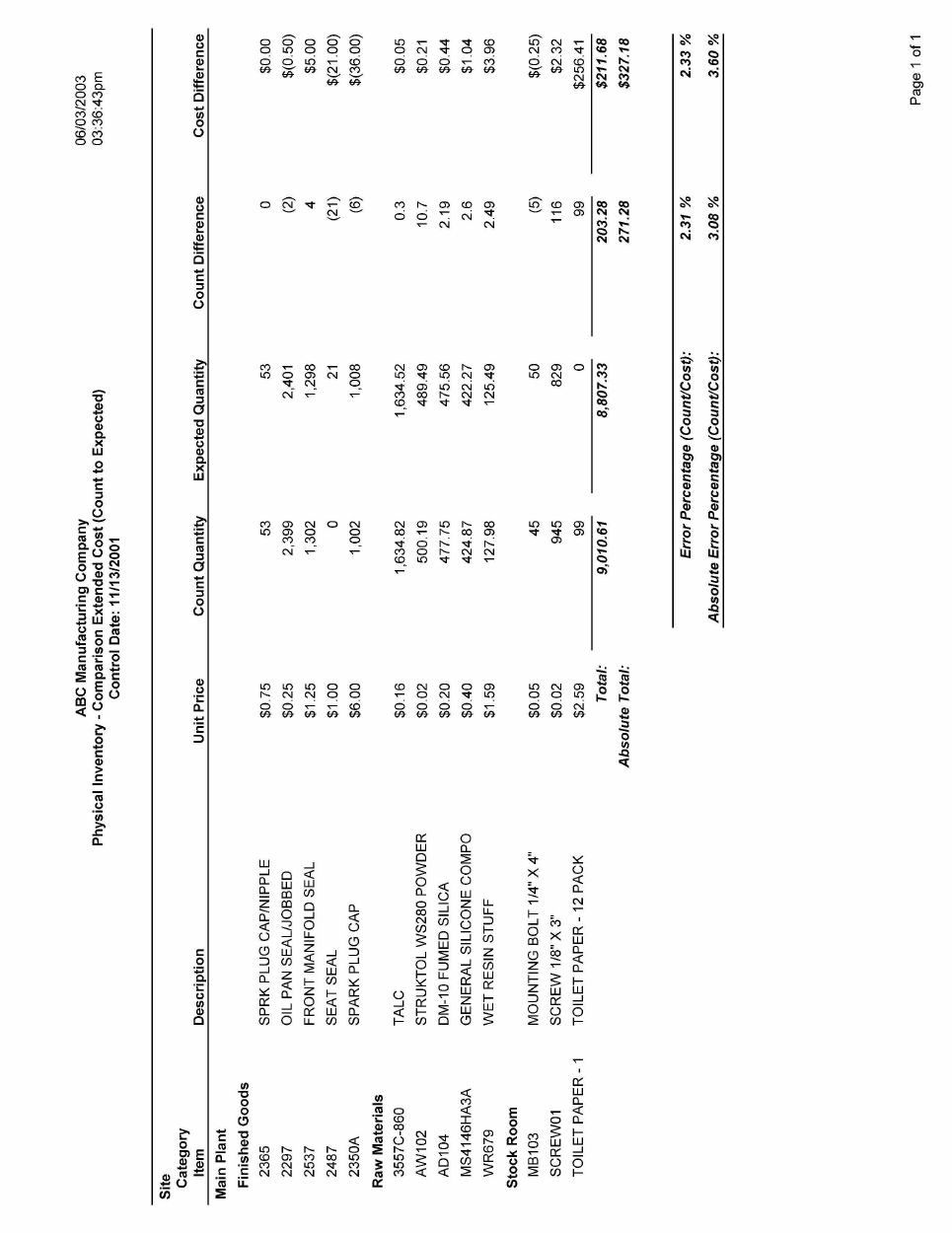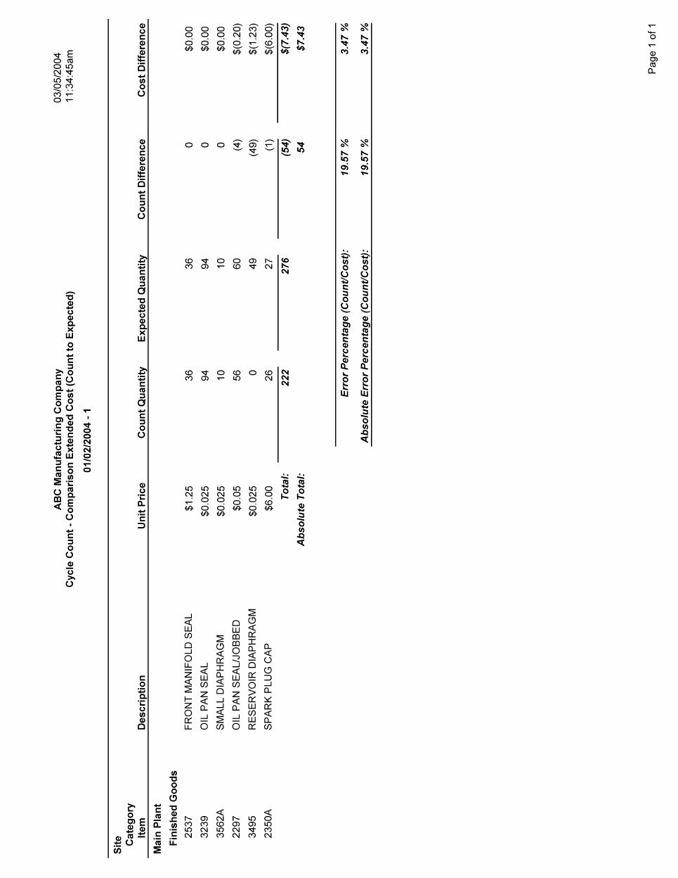 Cycle Count - Comparison Extended Cost (Count to Expected)