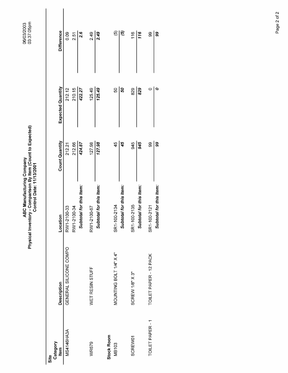 Physical Inventory - Comparison by Item (Count to Expected) ................................................. 36