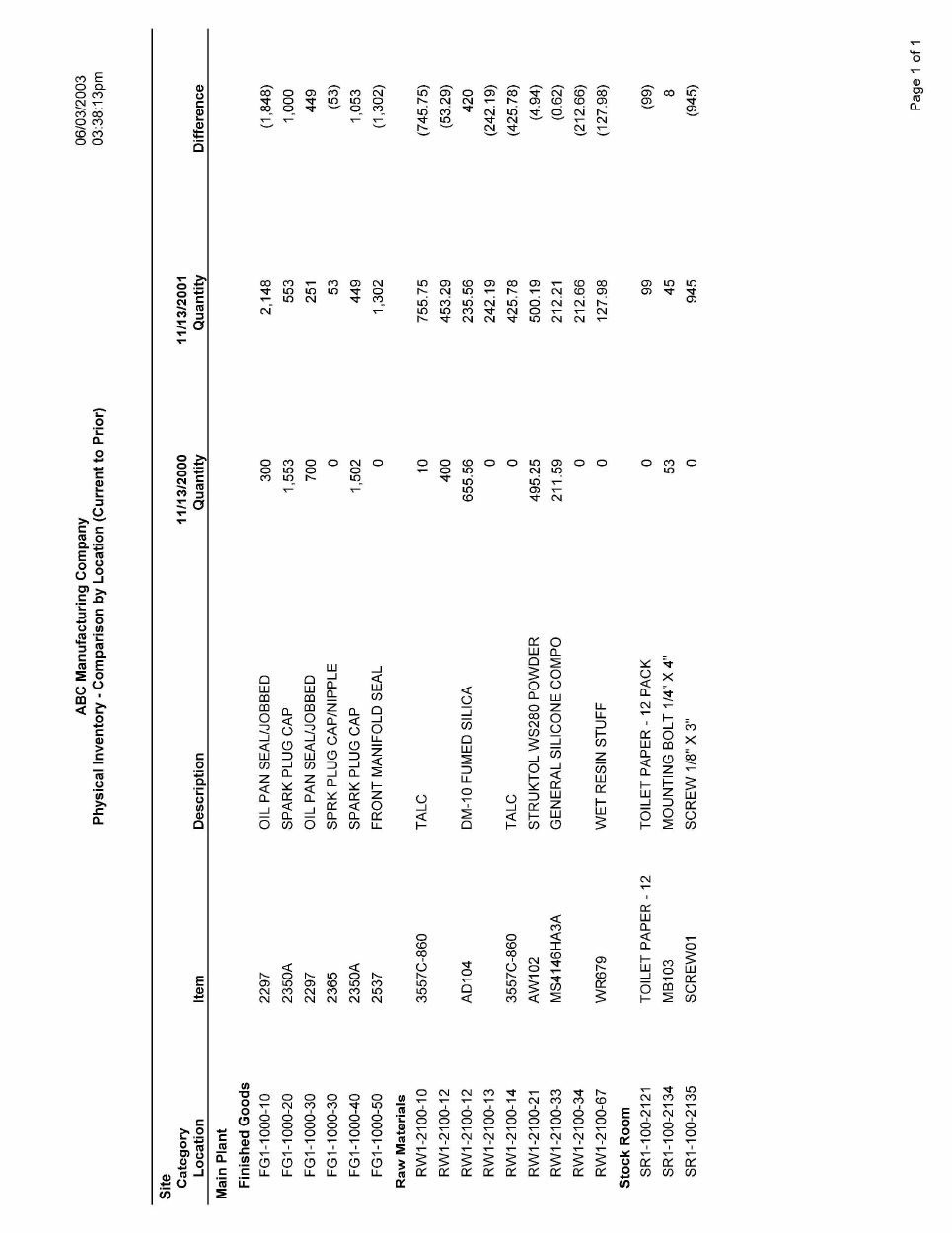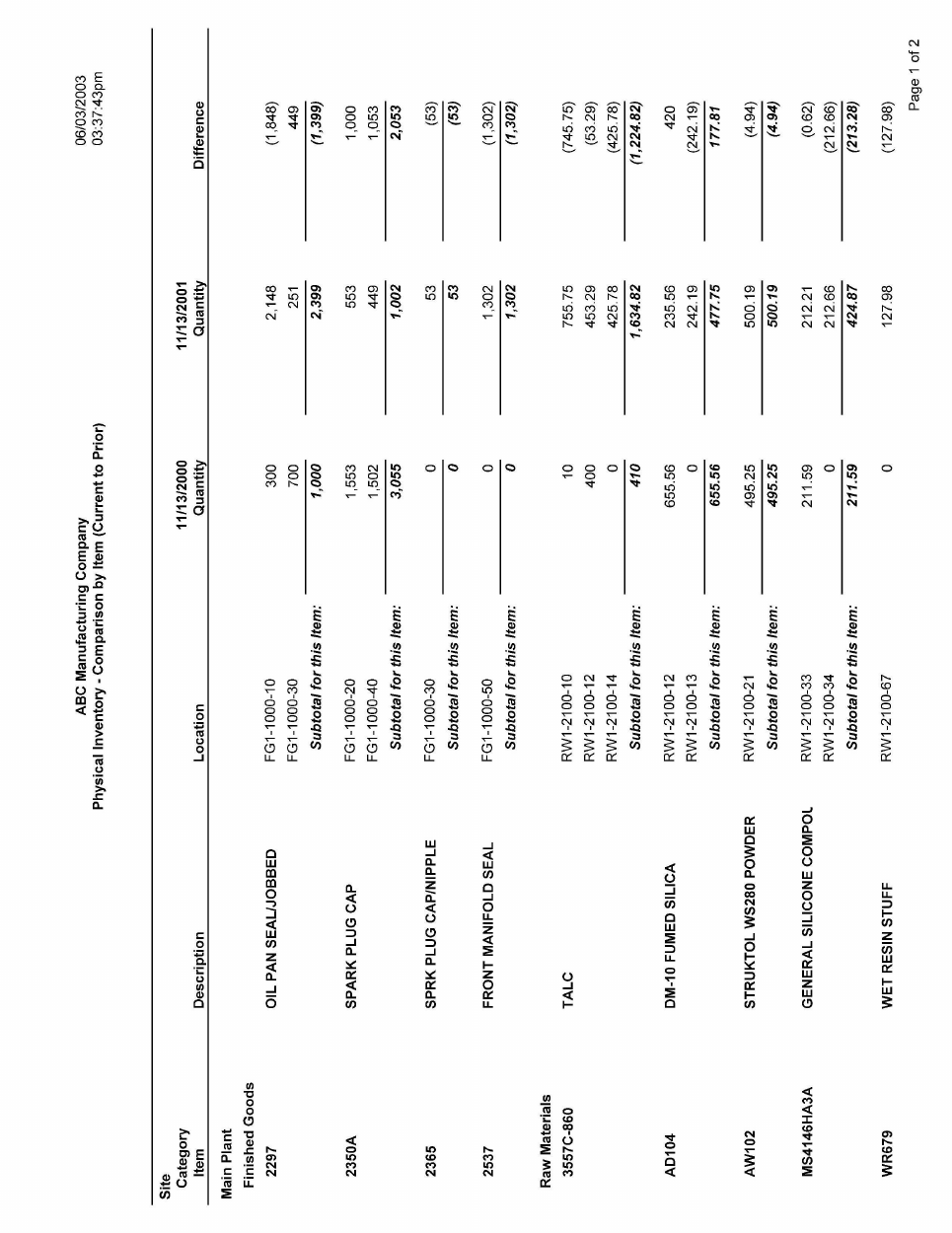 Physical Inventory - Comparison by Item (Current to Prior)...................................................... 43