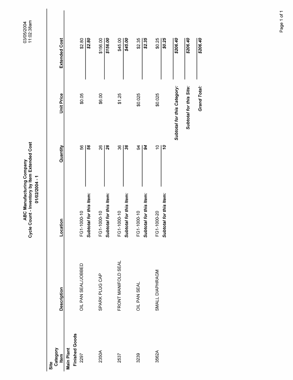 Cycle Count - Inventory by Item Extended Cost ........................................................................ 57