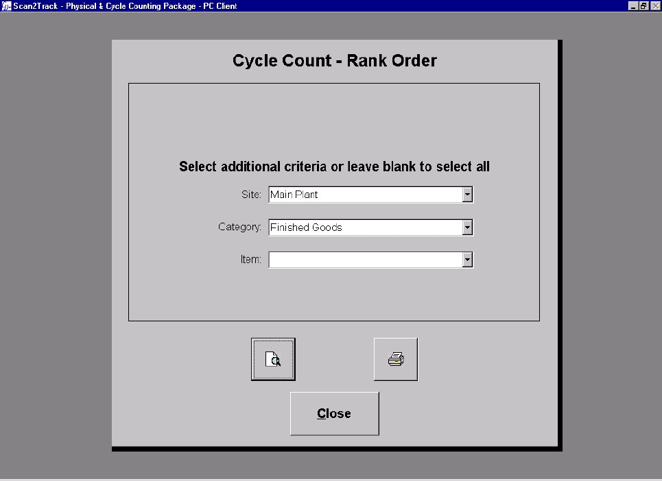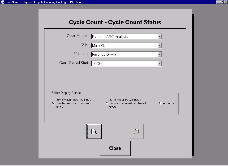 Click the Close button to close this screen and return to the Cycle Count Reports Menu.