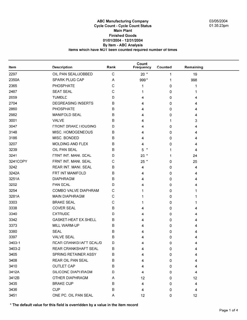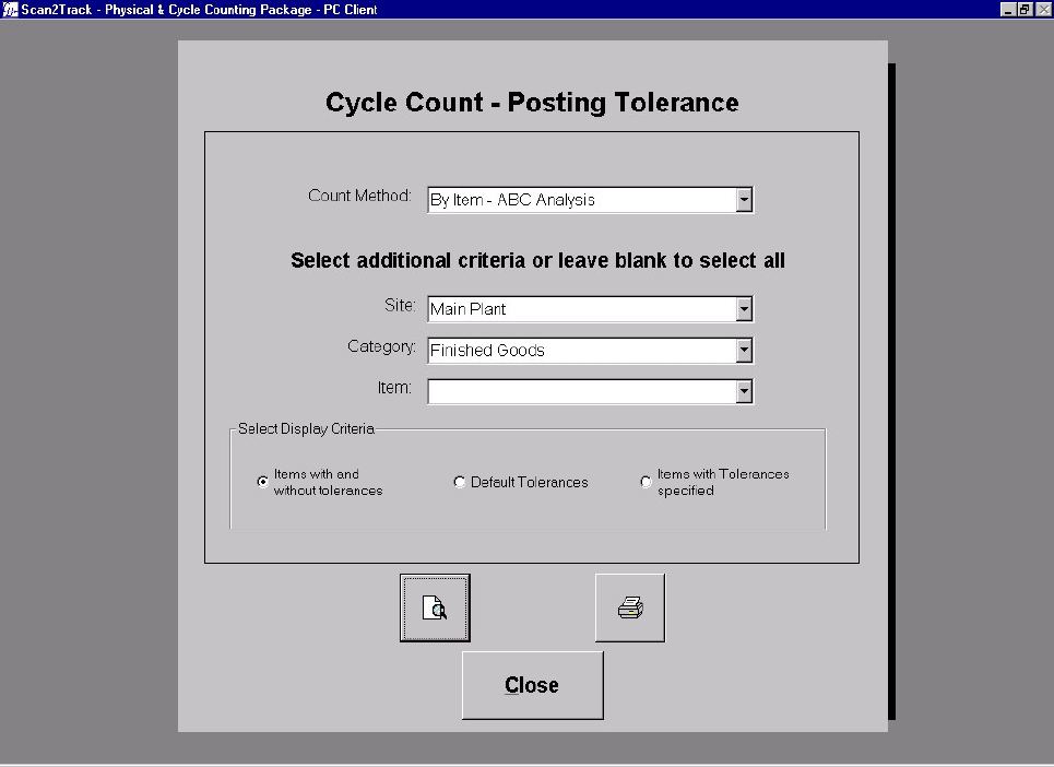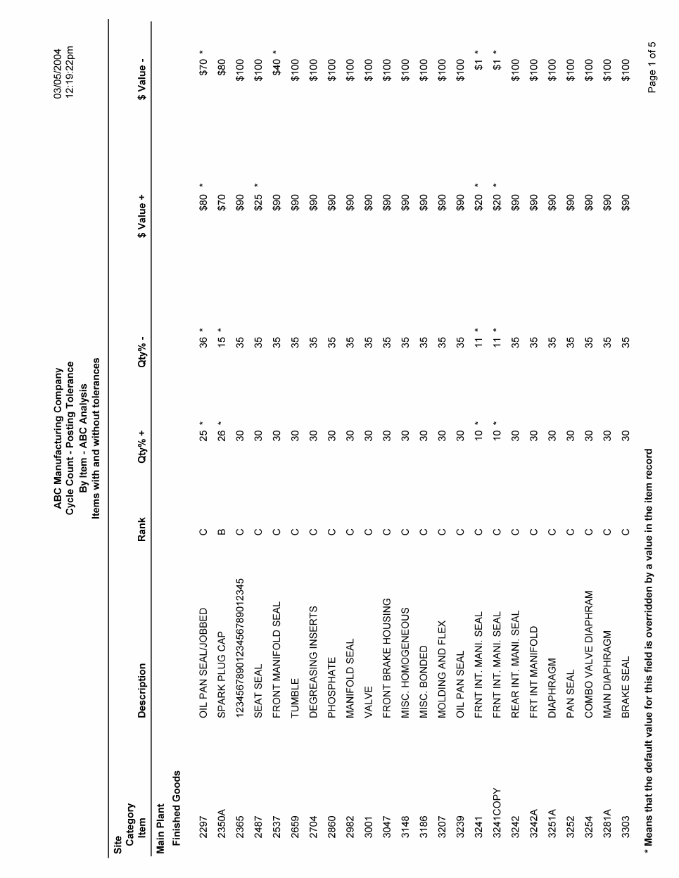 listed. If you select the “By Item – ABC Analysis” count method, the default tolerances are listed