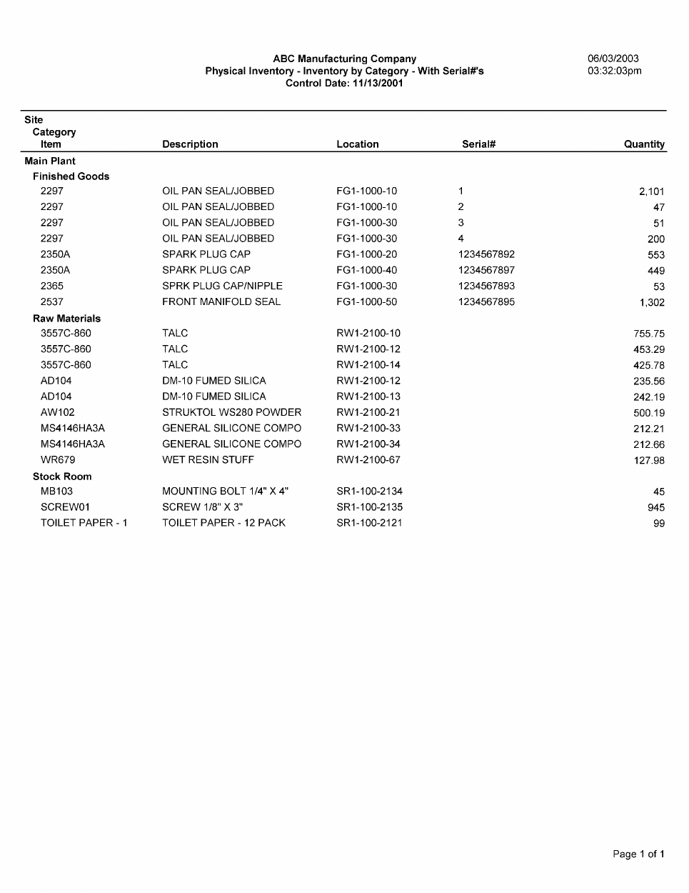 Physical Inventory - Inventory by Category – With Serial #’s ..................................................... 5