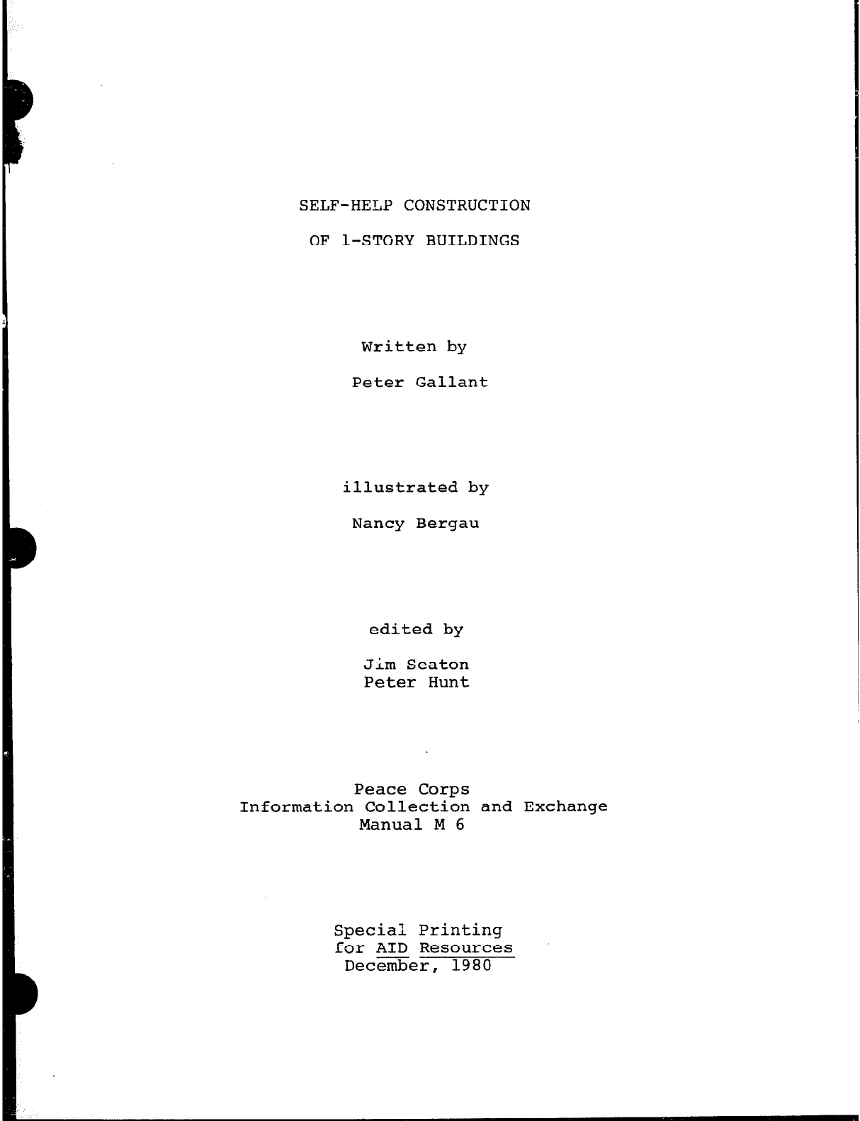 Self-Help Cons&.&ion of I-Story Buildings is the sixth in a series