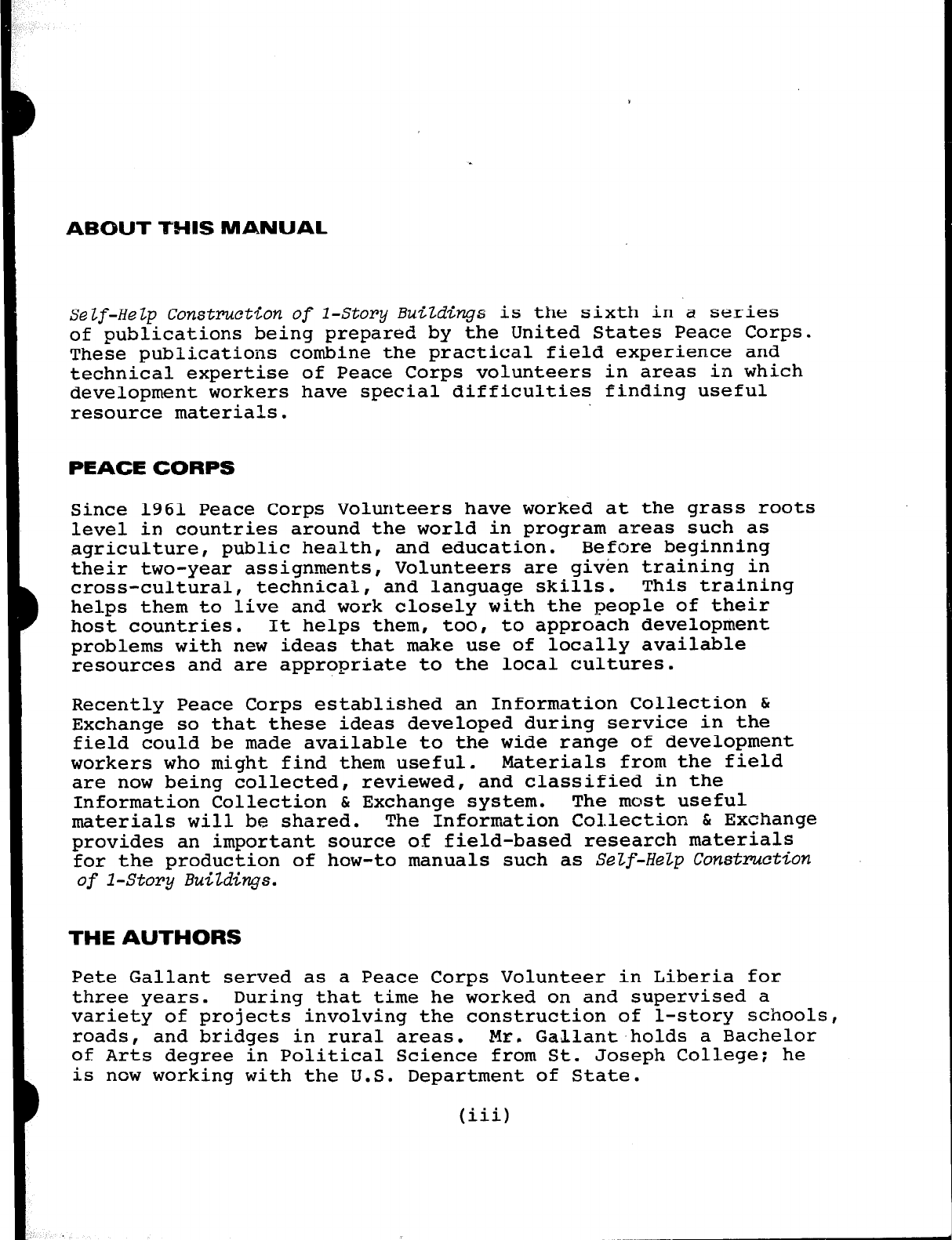 Peace Corps (Togo). Construction Handbook: In-Country Training.