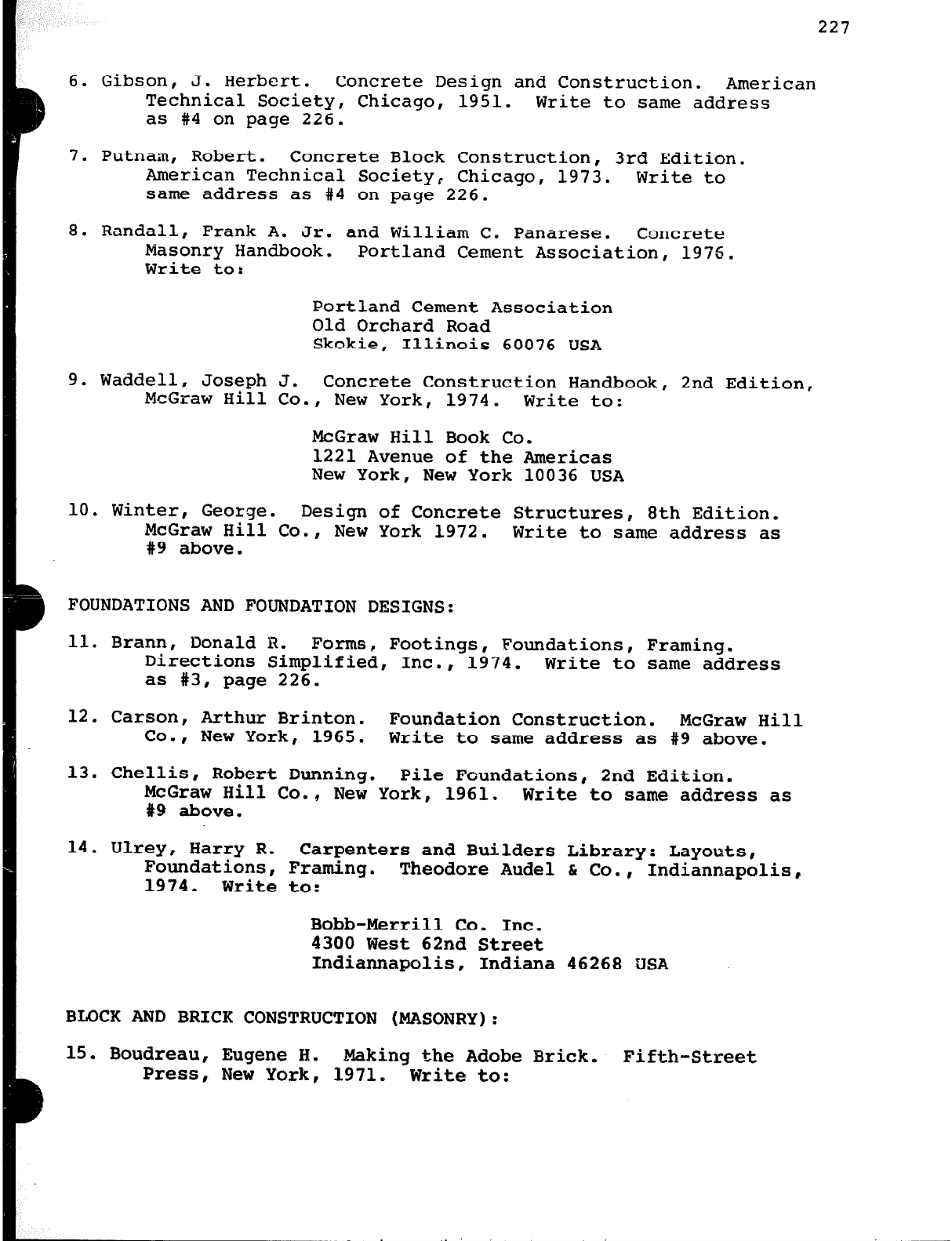 30. Cooper, F. Building Construction Estimating. McGraw Hill Co.,
