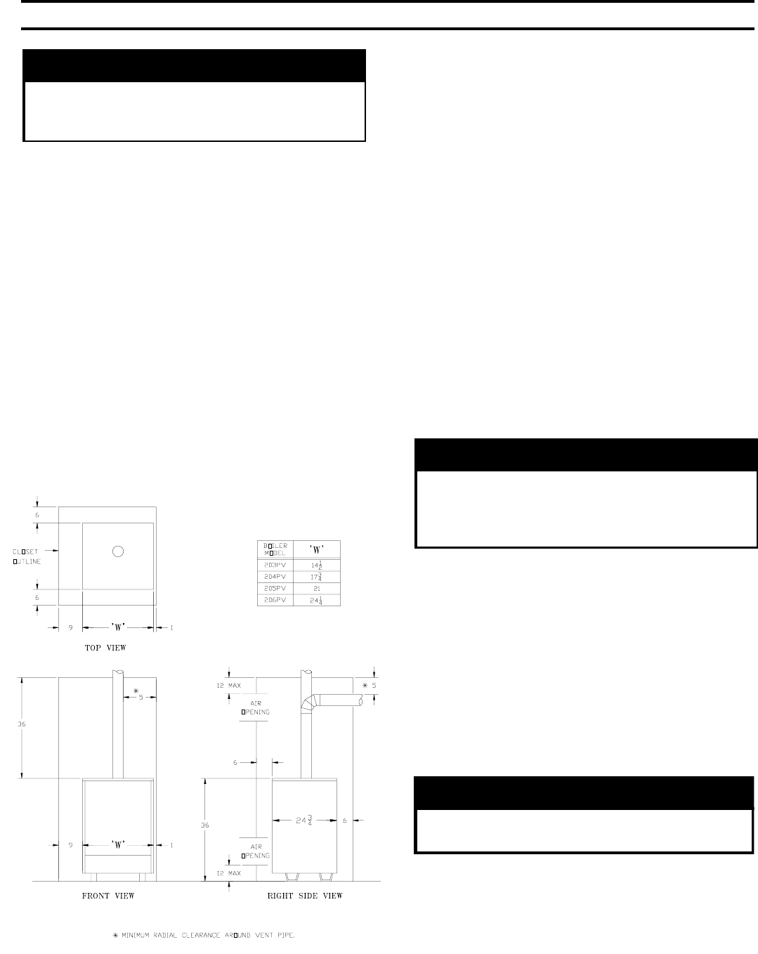 combustible flooring. The boiler must not be installed