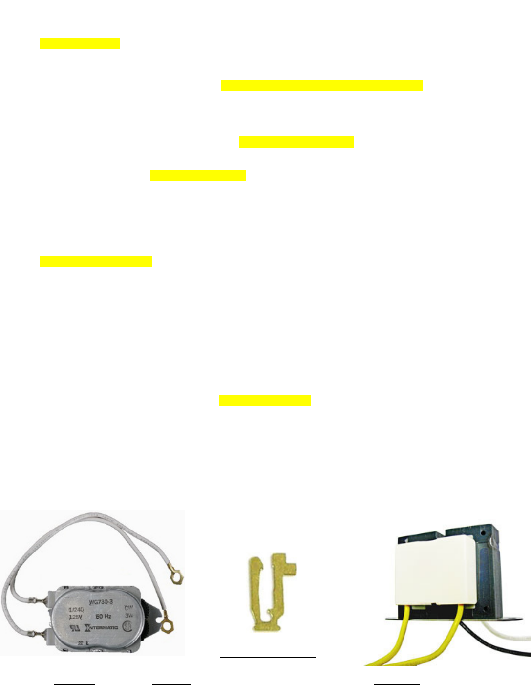 2) Yellow dial rotates once each 24 hours. If dial is slow or not turning, then for power to timer, check that wires are connected
