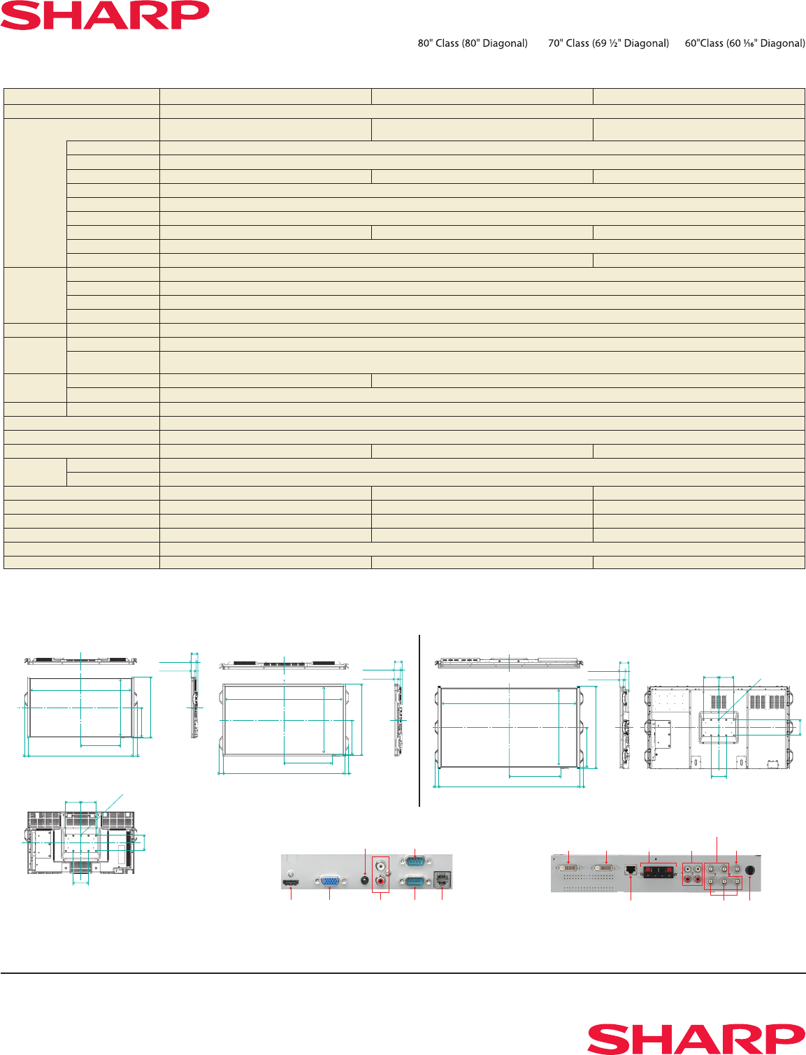 LCD Panel 80" class (80" diagonal) widescreen UV2A LCD 70" class (69-1/2" diagonal) widescreen, UV2A LCD 60" class (60 1/16" diagonal) widescreen, UV2A LCD