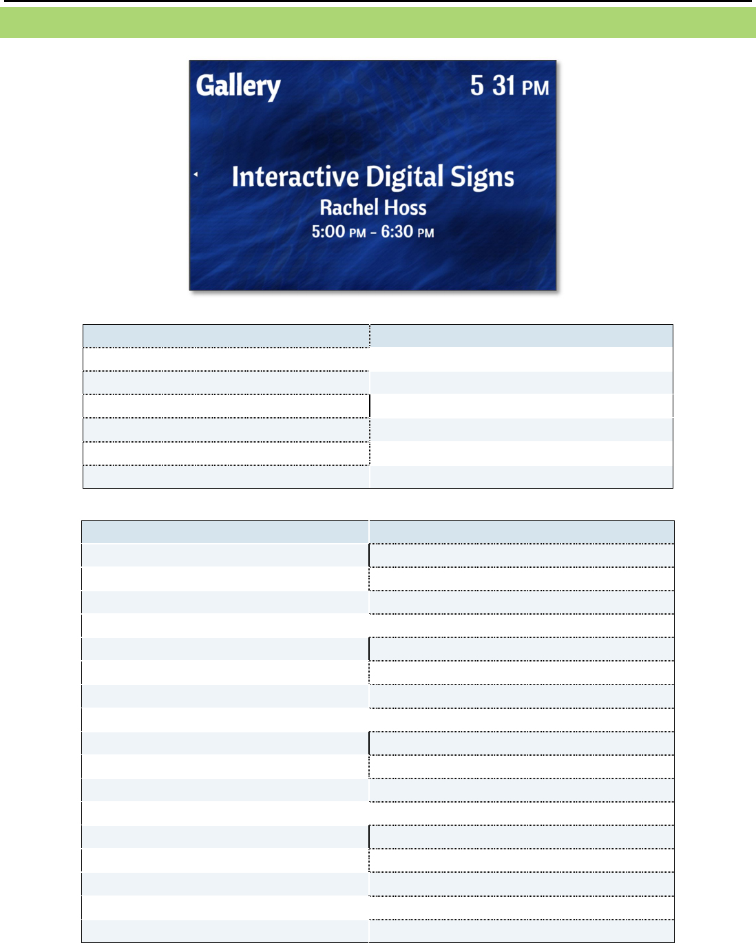 images or news crawls on the meeting room signs. This also allows event data to be displayed on just a region of the