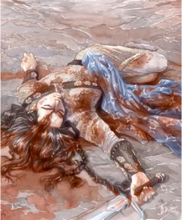 shining mail, singing songs of rage or sorrow as they slay.