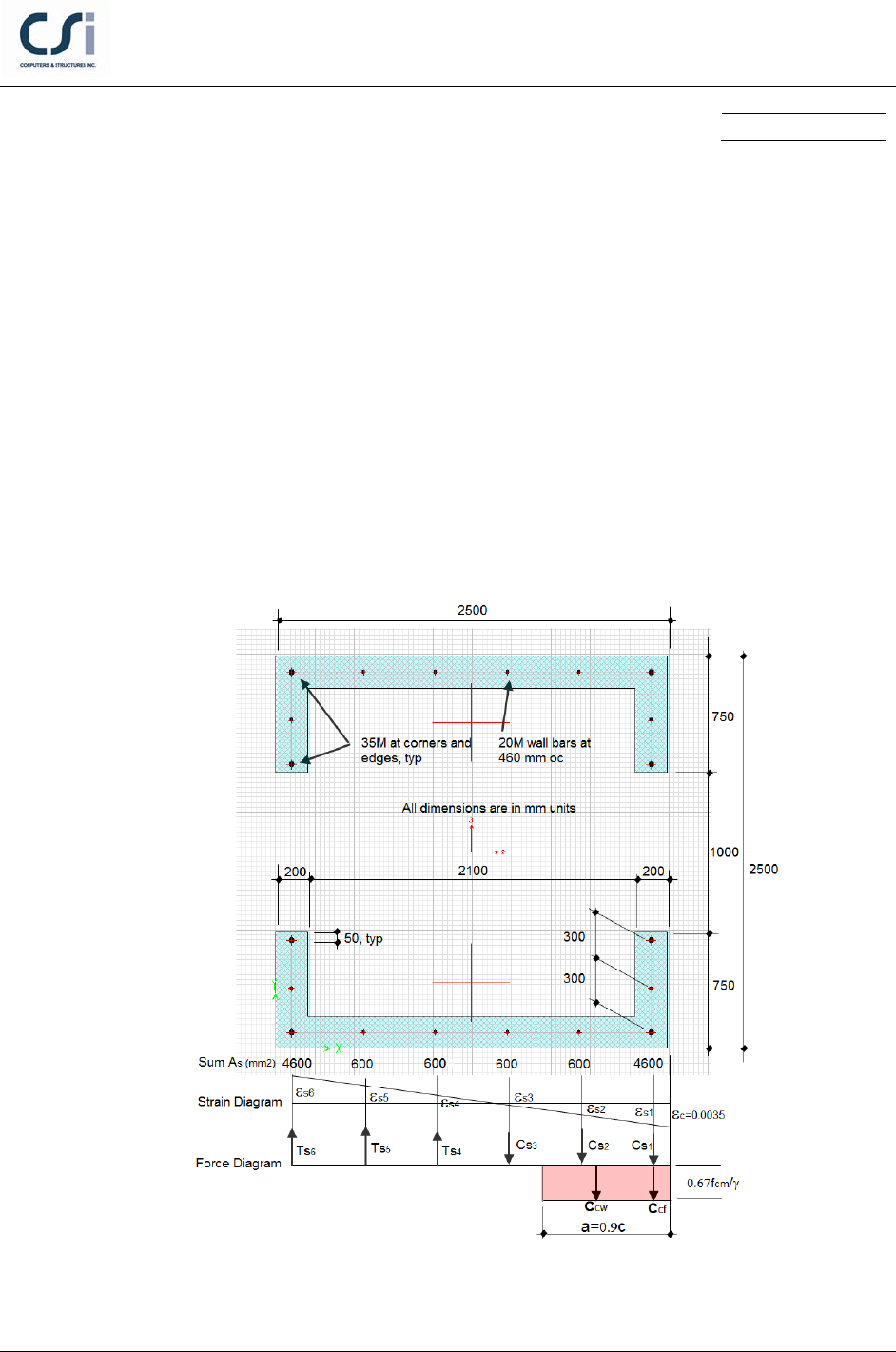 8368 kN and moments Muy = 11967 kN-m. This wall is reinforced as noted