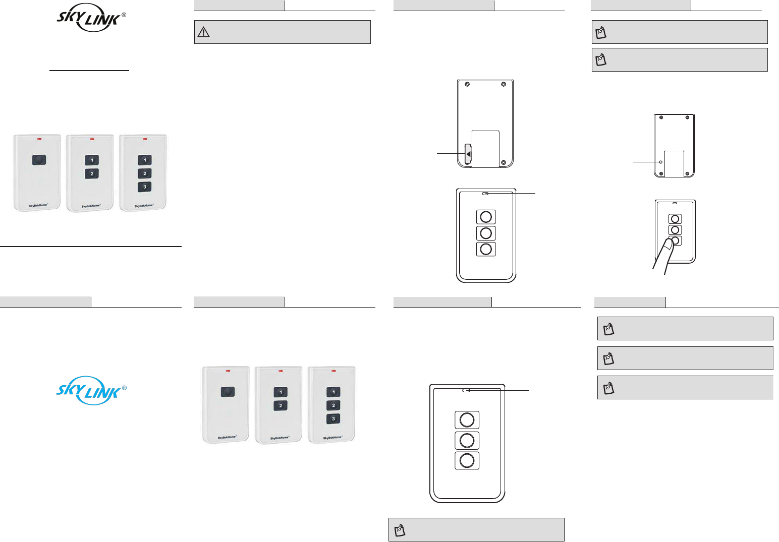 Congratulations on your purchase of the SkylinkHomeTM 1, 2 or 3 Button