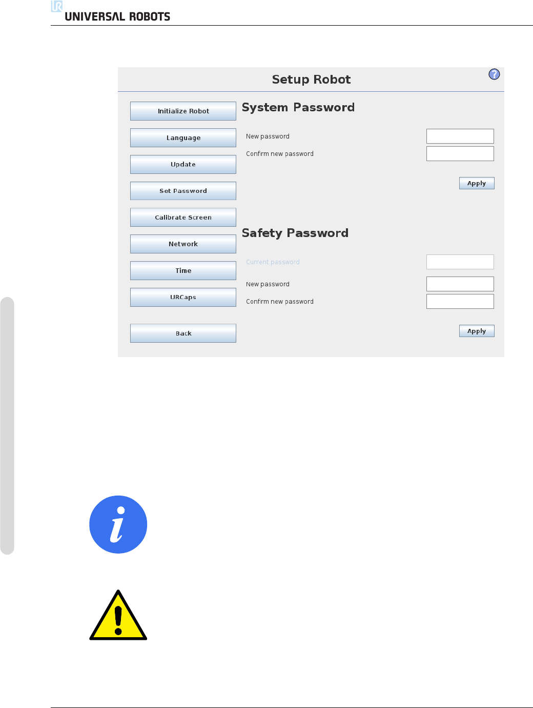 rized modification of the setup of the robot. When the System password is set, programs can be