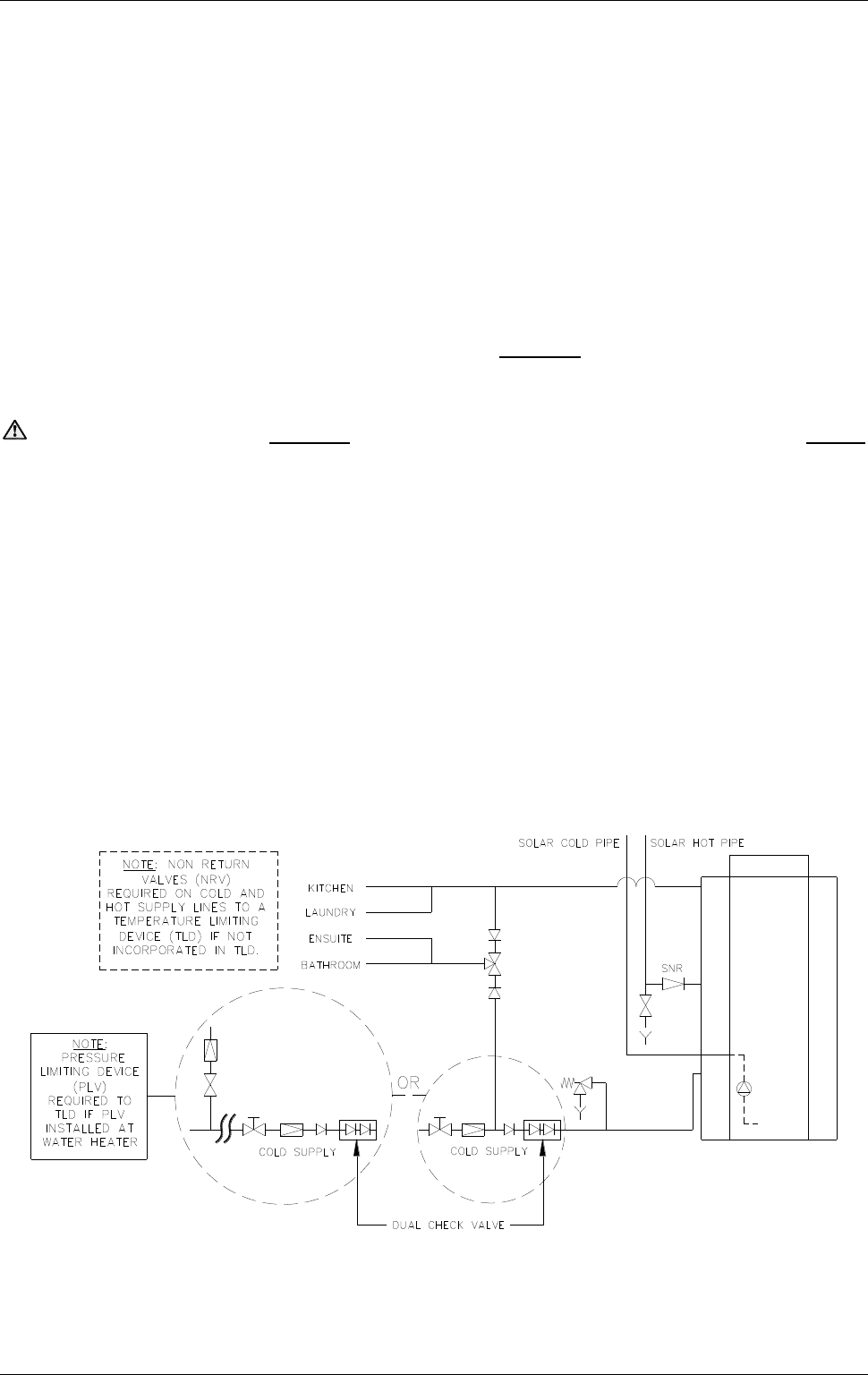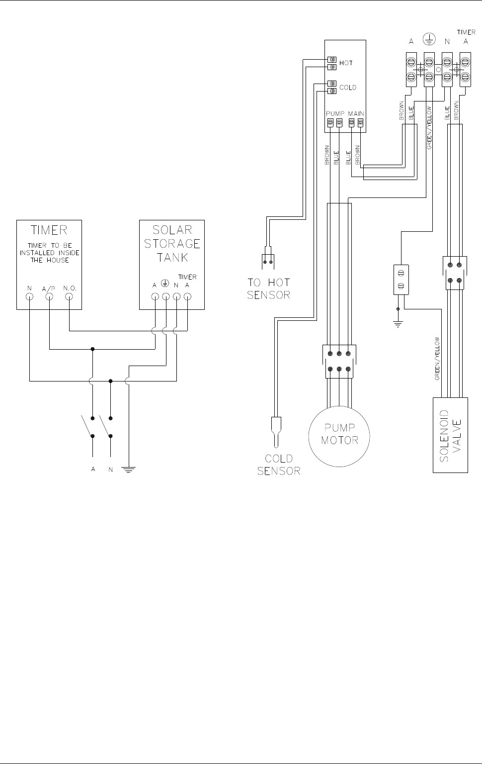 The solar hot and solar cold pipes between the solar storage tank and the solar collectors MUST BE