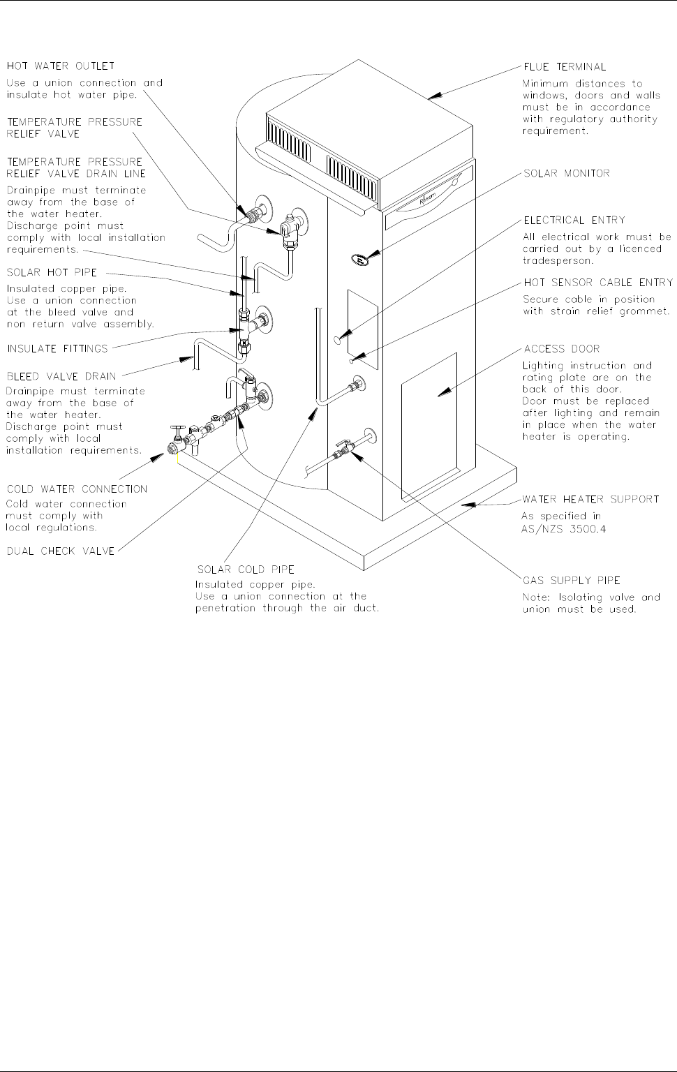This water heater must be installed and serviced by an authorised person.