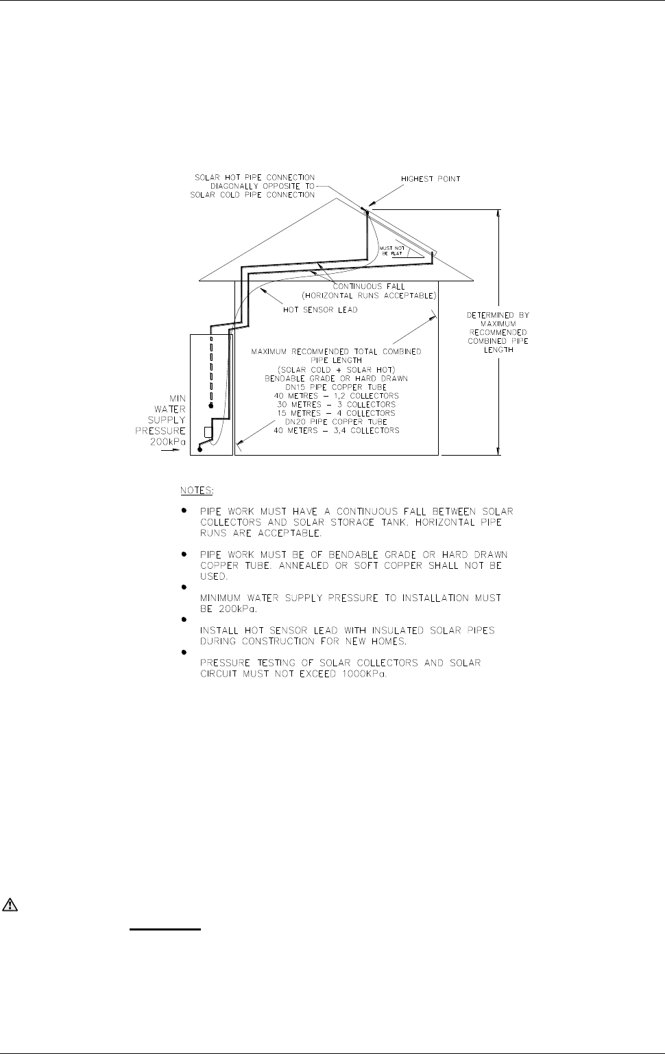It is a requirement of a solar water heater installation that all pipe work be in copper