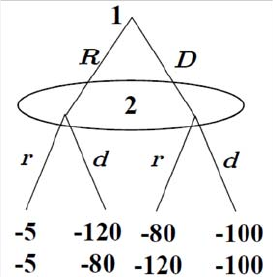 player 1 chooses in =1and will prevent player 2 from modifying it.