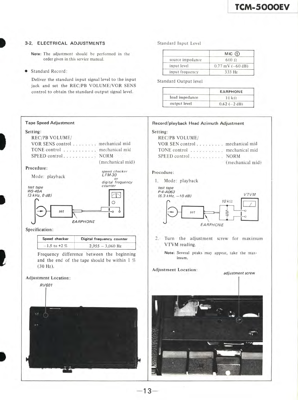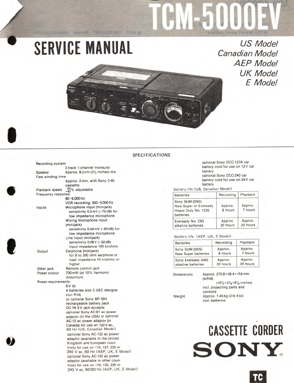 User Manual: Sony TCM-5000EV Cassette Machine Service Manual